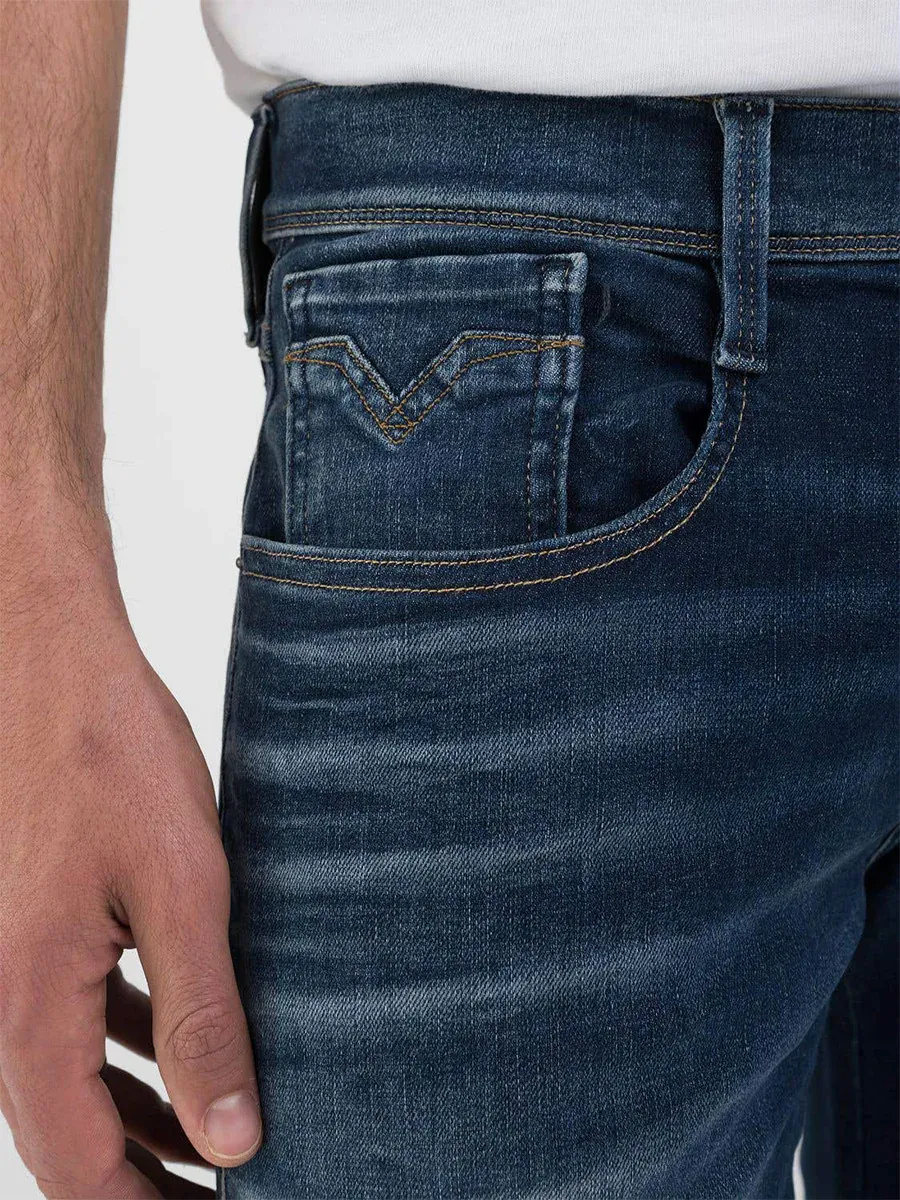 These jeans exude contemporary style and comfort with their navy blue stretch cotton denim construction and slim fit silhouette. The Hyperflx technology ensures maximum flexibility and freedom of movement, making these jeans perfect for your active lifestyle.The classic navy blue hue adds versatility to your wardrobe, while the slim fit cut provides a modern and streamlined look.