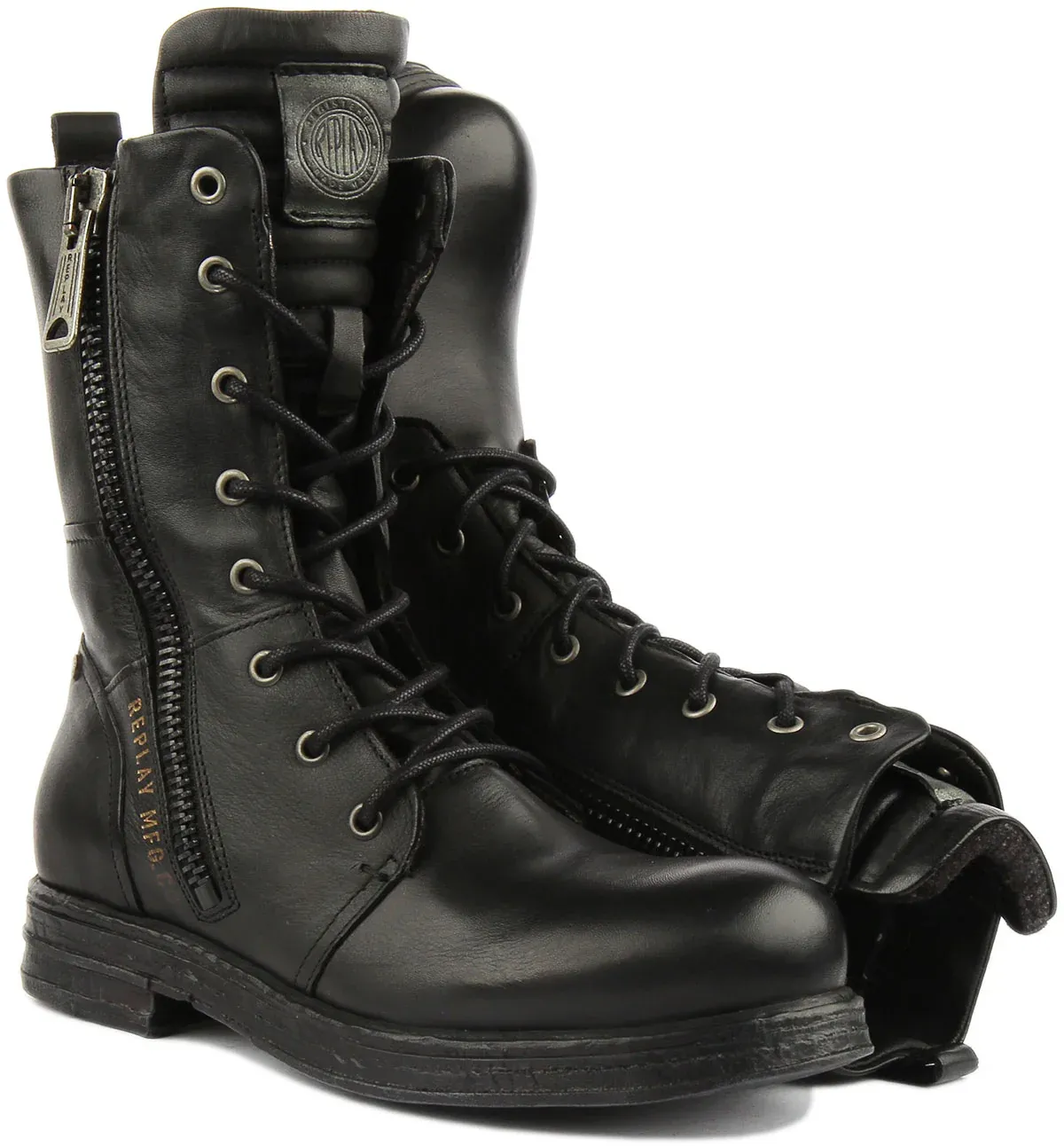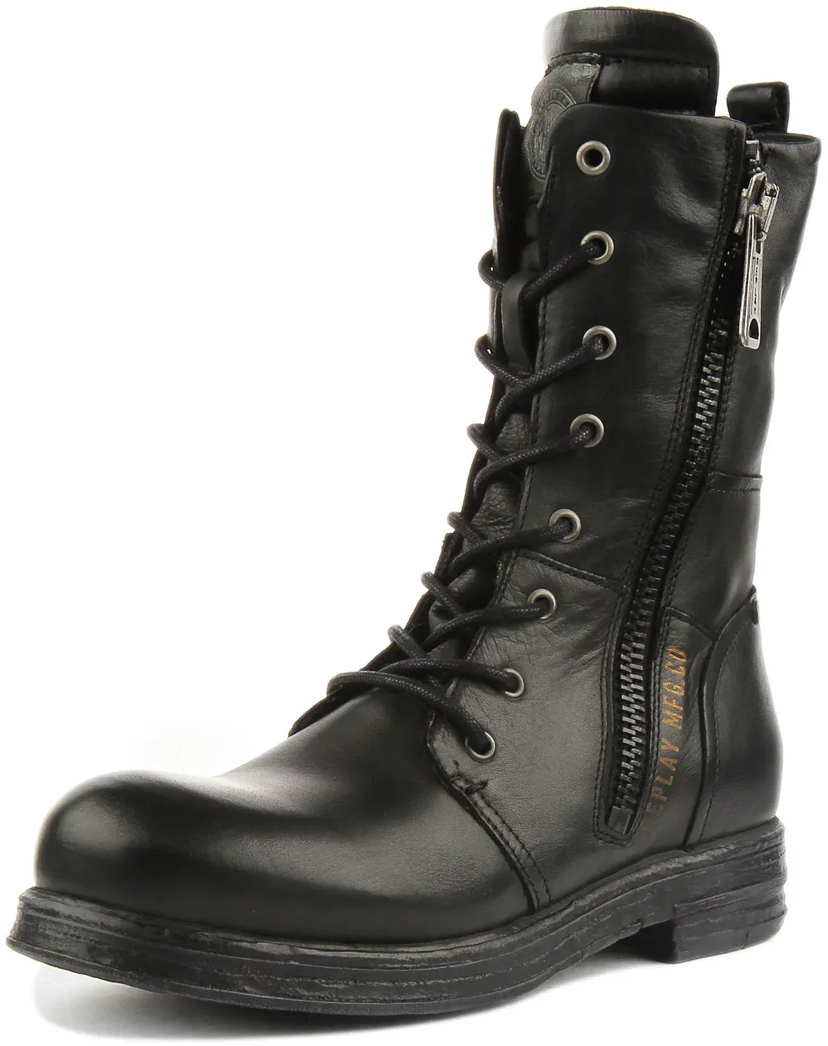 Replay Evy are a perfect combination of style and comfort. These military style boots are made from premium leather upper with lace up closure and side zip for a perfect fit. It has TPR rubber outsole for traction and grip, while the soft lining provides comfort. Finished with Replay branding, these are perfect boots for all day, everyday wear.