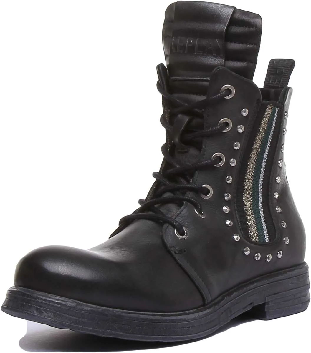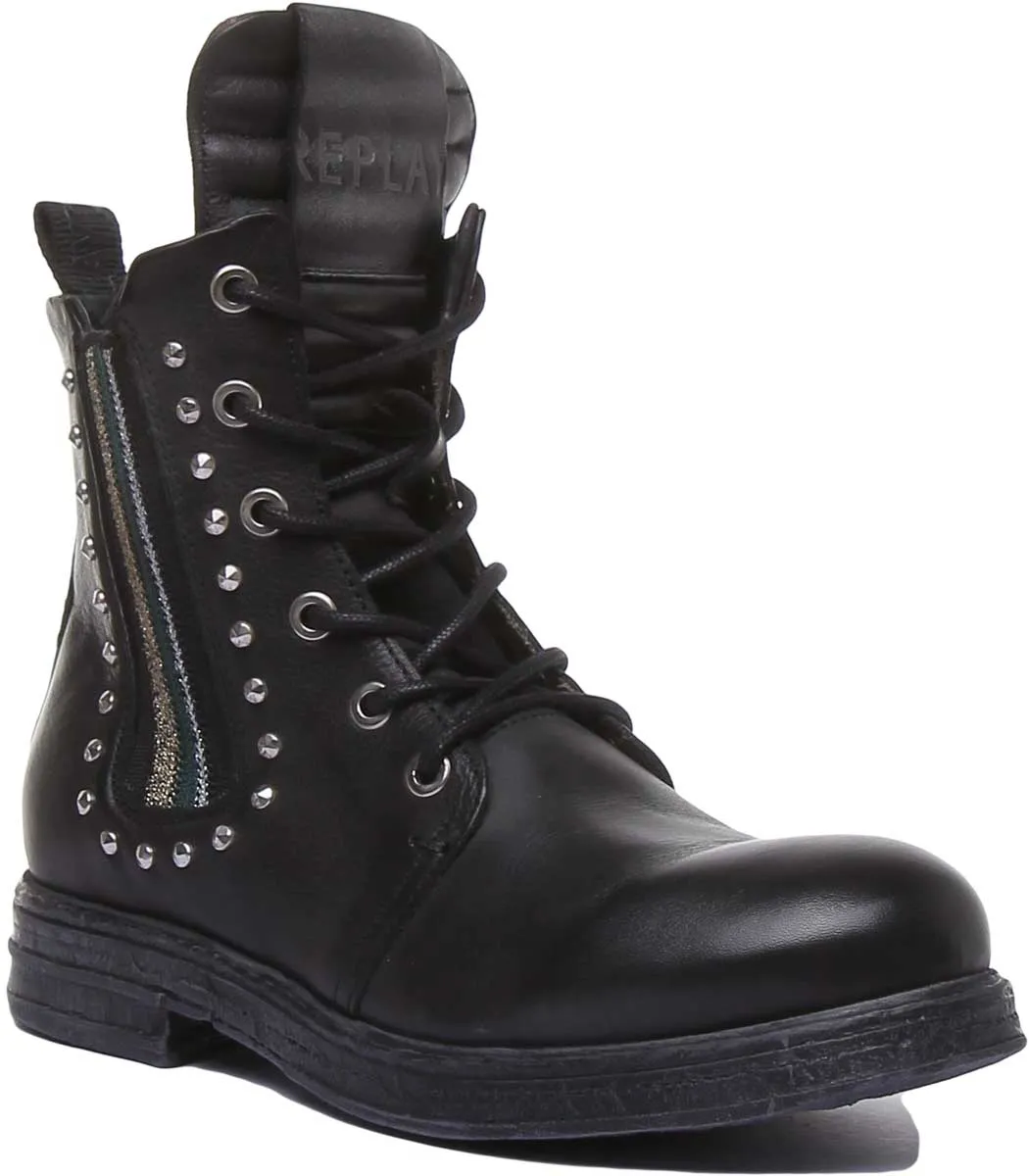 Made from premium leather upper, these unique stylish ankle boots feature lace up closure for a secure fit. Longer padded tongue and soft collar adds extra comfort to your feet, while the rubber outsole ensures good grip and traction in every step. It has side zip on one side and elasticated panel on the other side with stud detailing for easy on and off. Perfect comfortable boots for any casual event.