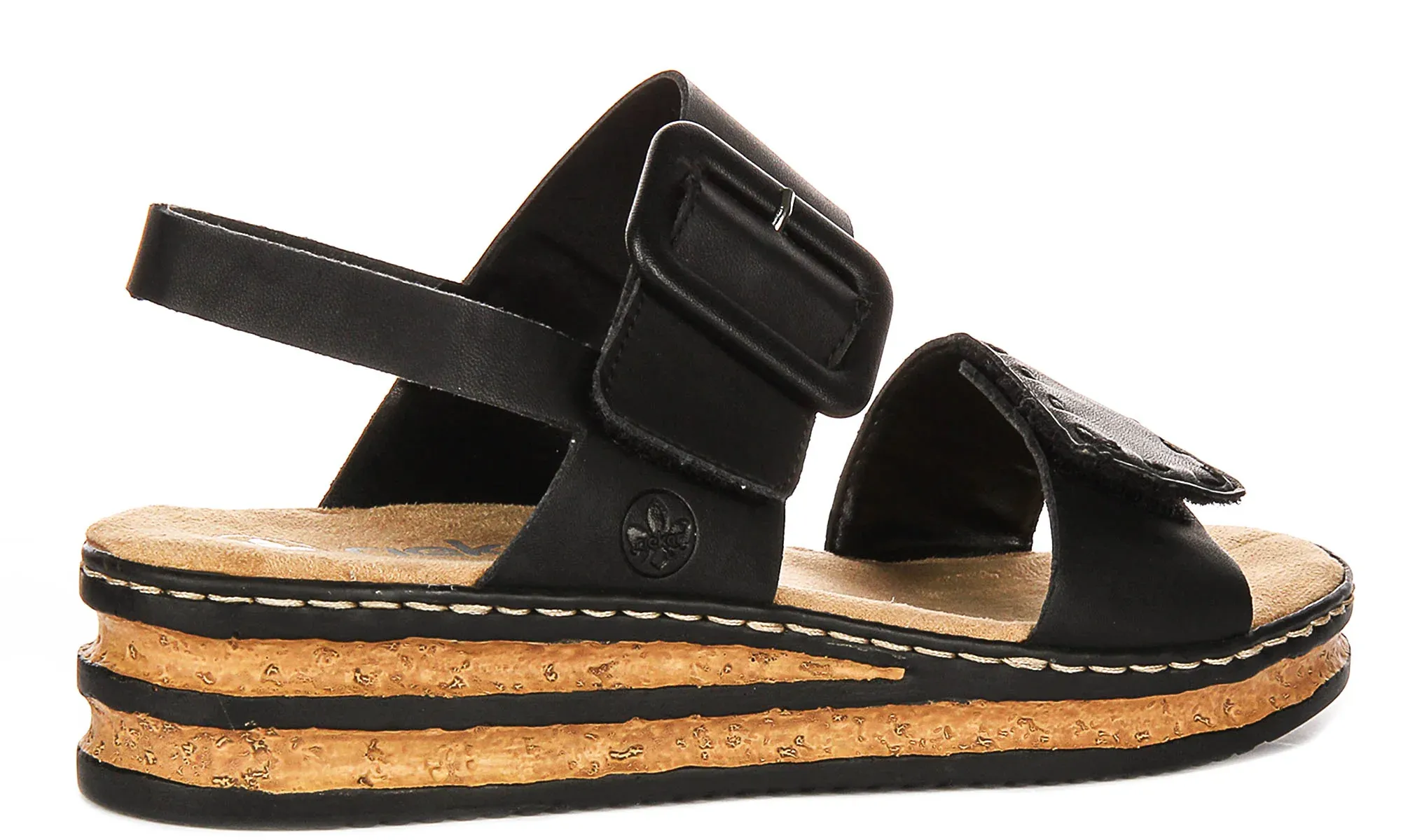 Rieker 62950-00 In Black For Women Hook & Loop Buckle Fasten Sand