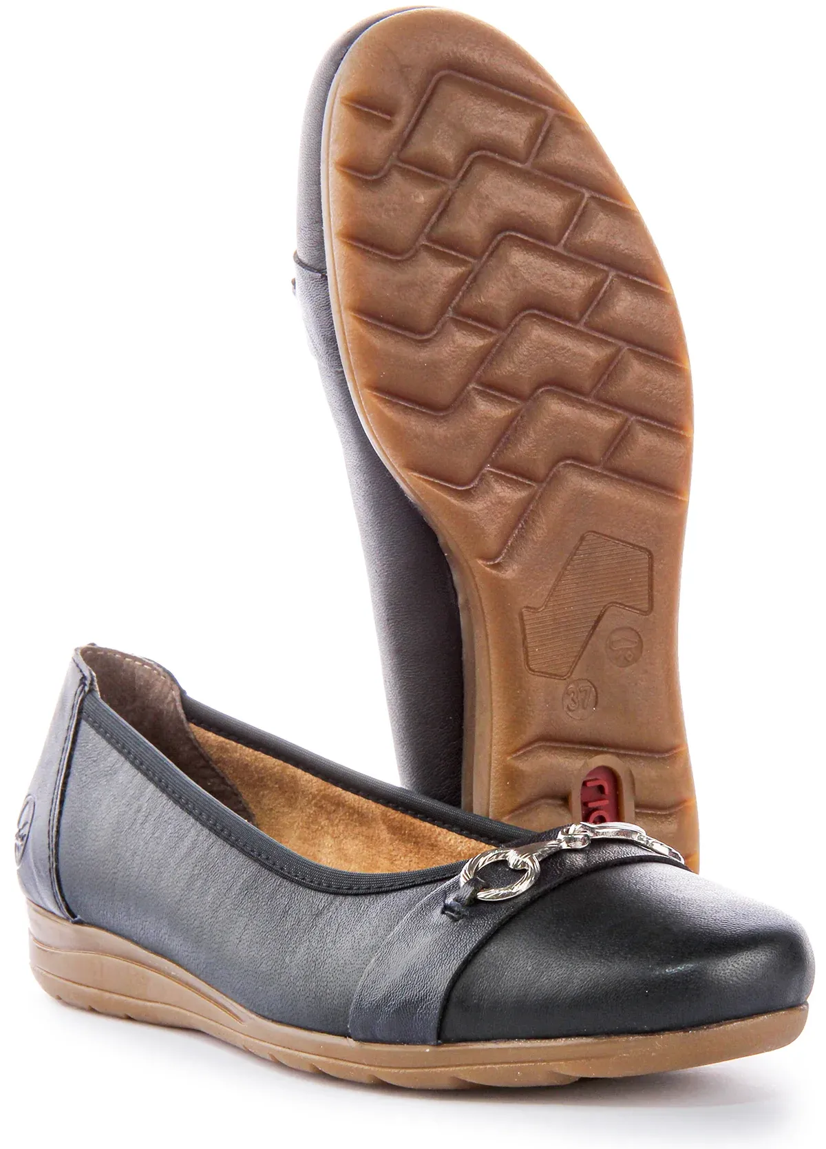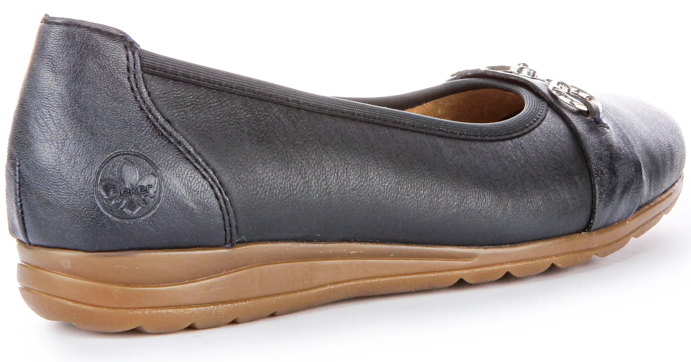 The slip on design ensures easy wear, while the cushioned insole provides all day comfort. . Designed for women, they boast a round toe silhouette for a classic look. Crafted from navy leather, these shoes exude elegance and refinement, perfect for both casual and formal occasions.