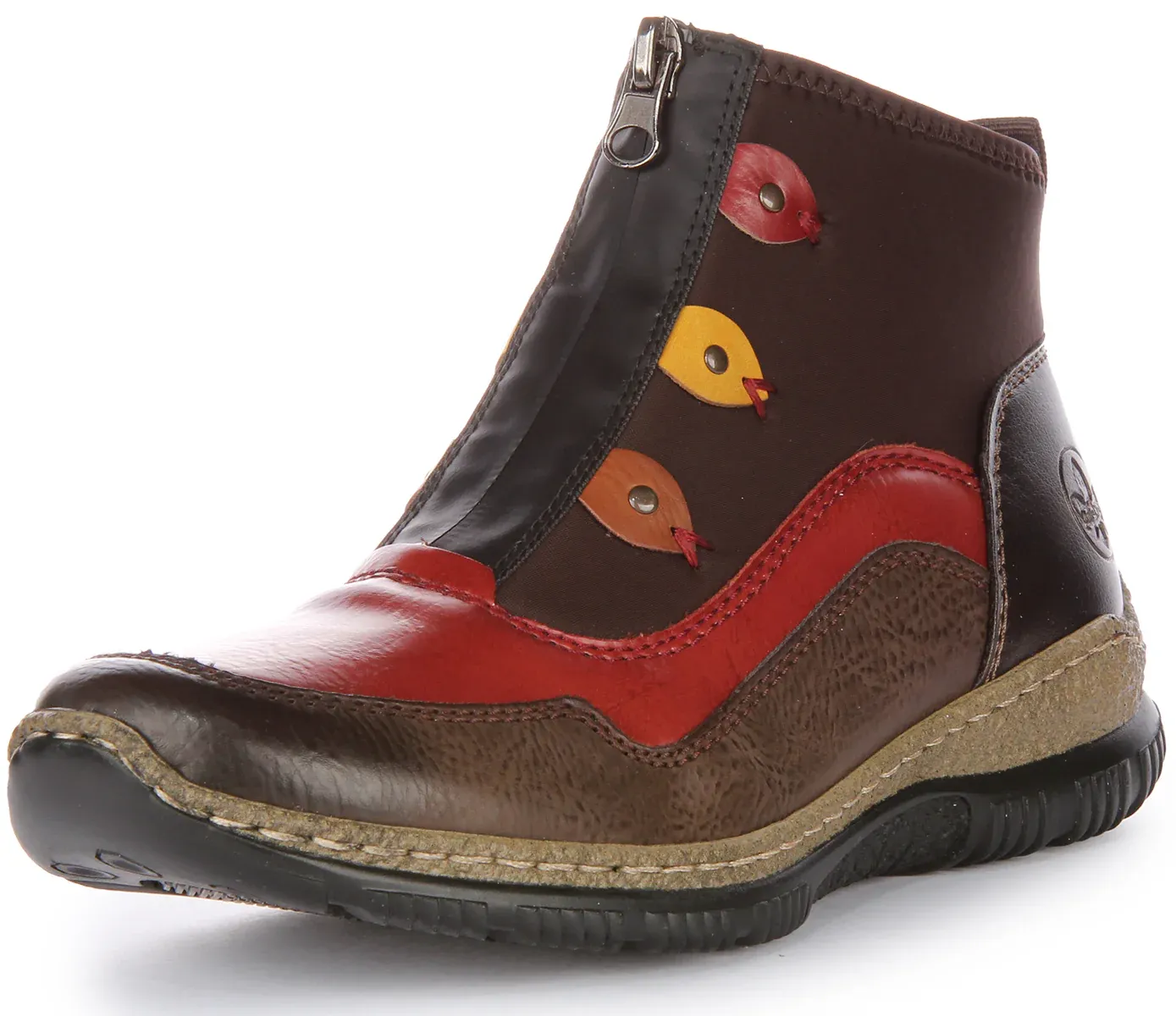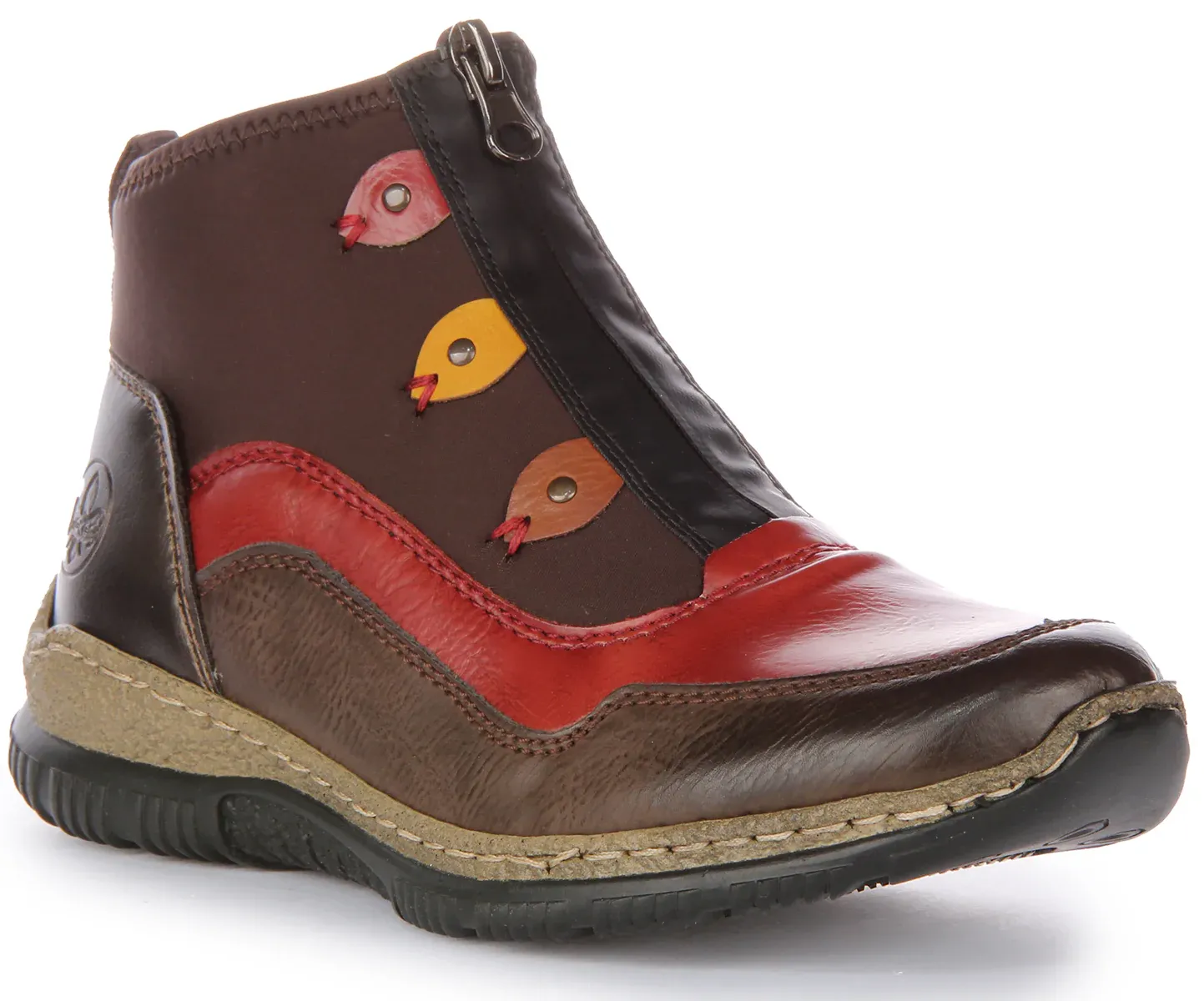 Designed with comfort and style in mind, these ankle boots from Rieker feature high quality synthetic upper with textile lining for extra comfort. It has front zip closure closure for a secure fit, cushioned insole and riricon outsole for ultimate comfort and support. Finished with Rieker branding, these boots are ideal for any casual wear.