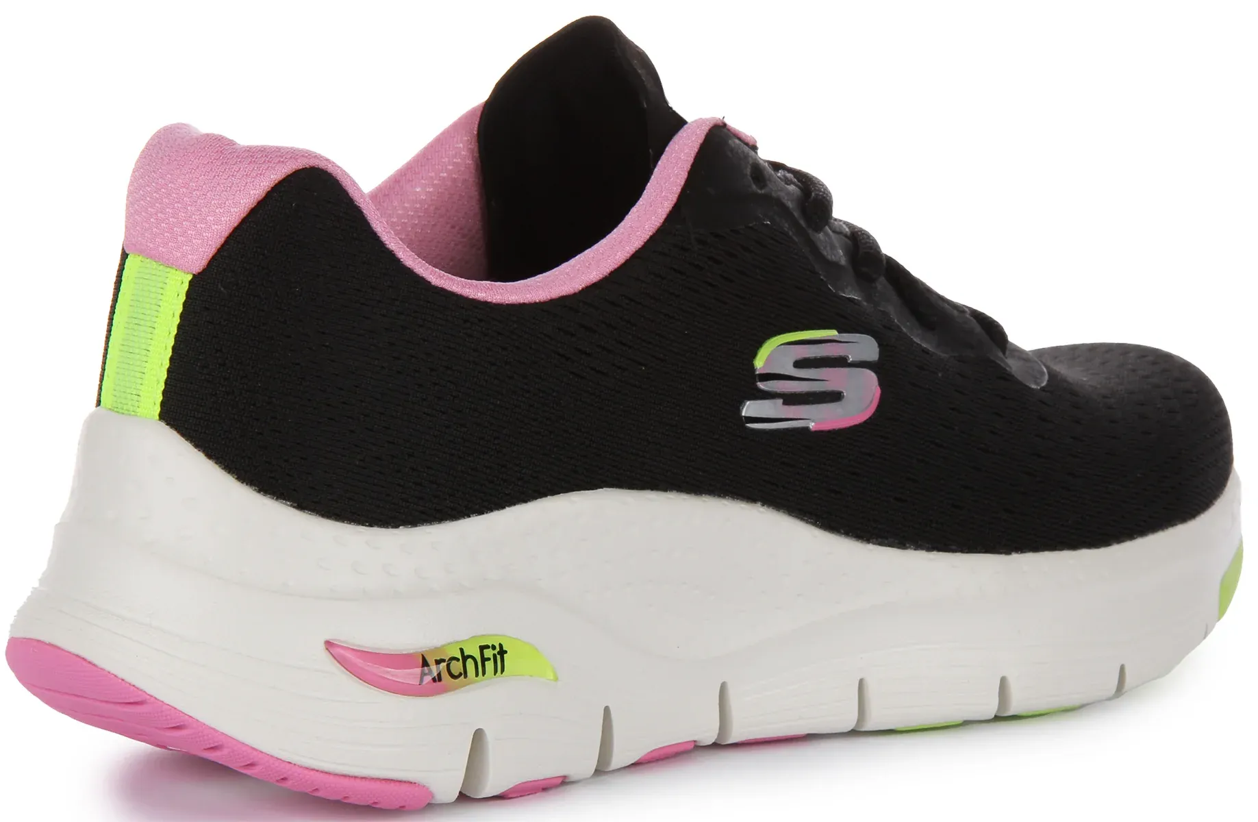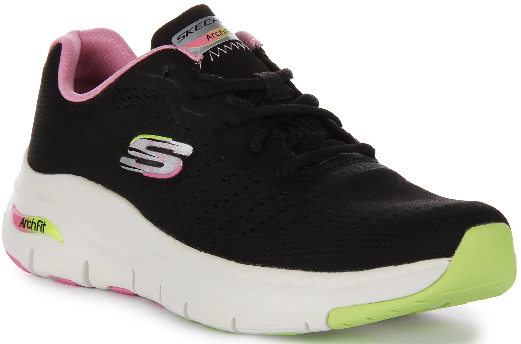 Your feet will thank you for the supportive comfort and sporty style of the Skechers Arch Fit – Infinity Cool shoe. Made from engineered mesh upper, these lace up vegan trainers feature removable Arch Fit insole system with podiatrist certified arch support. Cushioned midsole and soft fabric lining ensure comfort all day long, while the rubber outsole provides flexibility and traction.