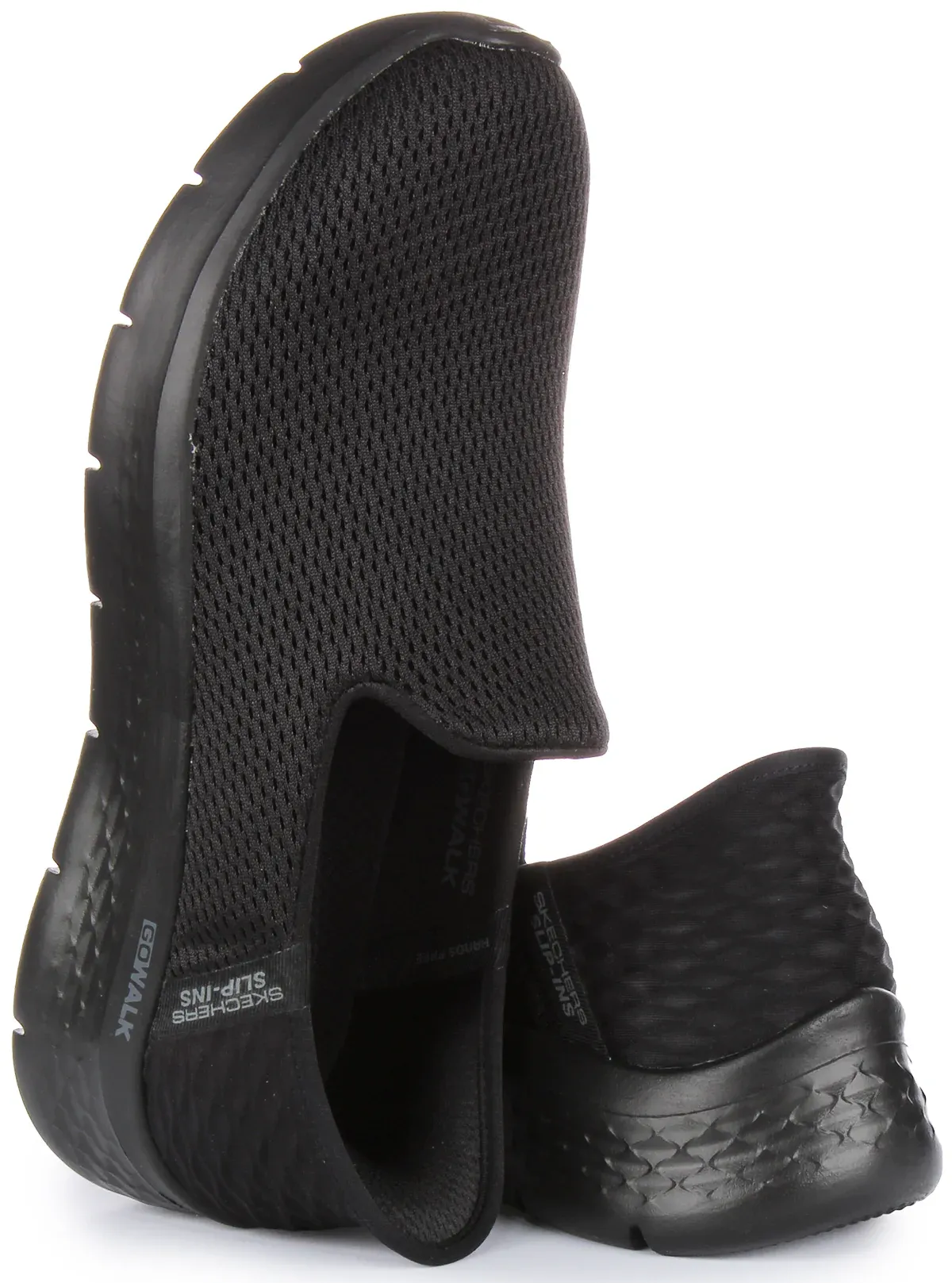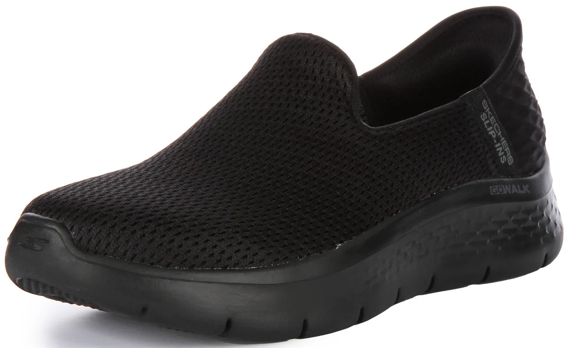 Add some air cushioned comfort wearing the Skechers Hands Free Slip Ins- Go Walk Flex Relish shoe. Crafted from athletic mesh upper with Skechers’ exclusive Heel Pillow and Skechers Air Cooled Memory Foam insole, these low top trainers feature lightweight Ultra Go cushioning and Flex Pillars for added support. A perfect pair of slip-on trainers for all day, everyday use.