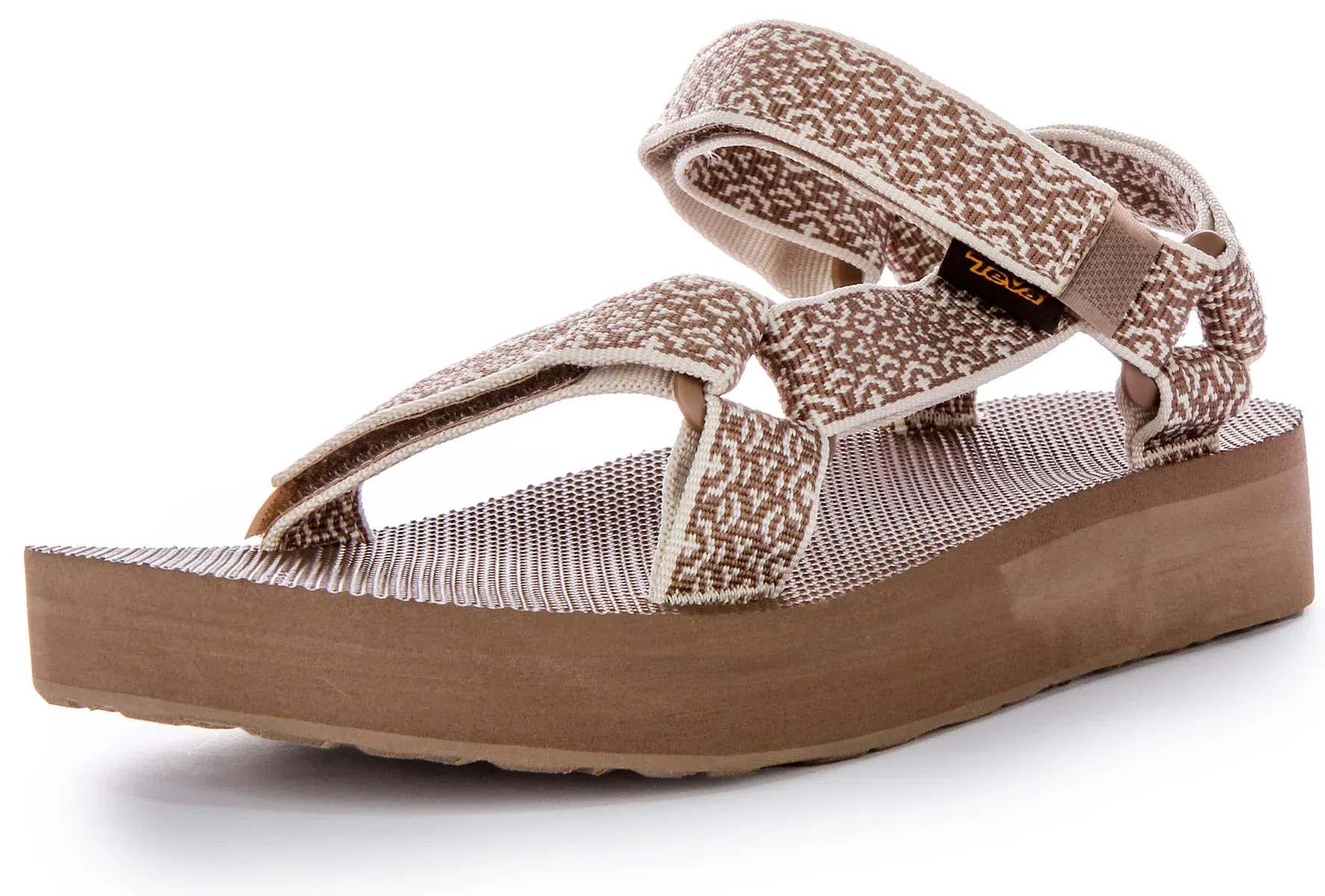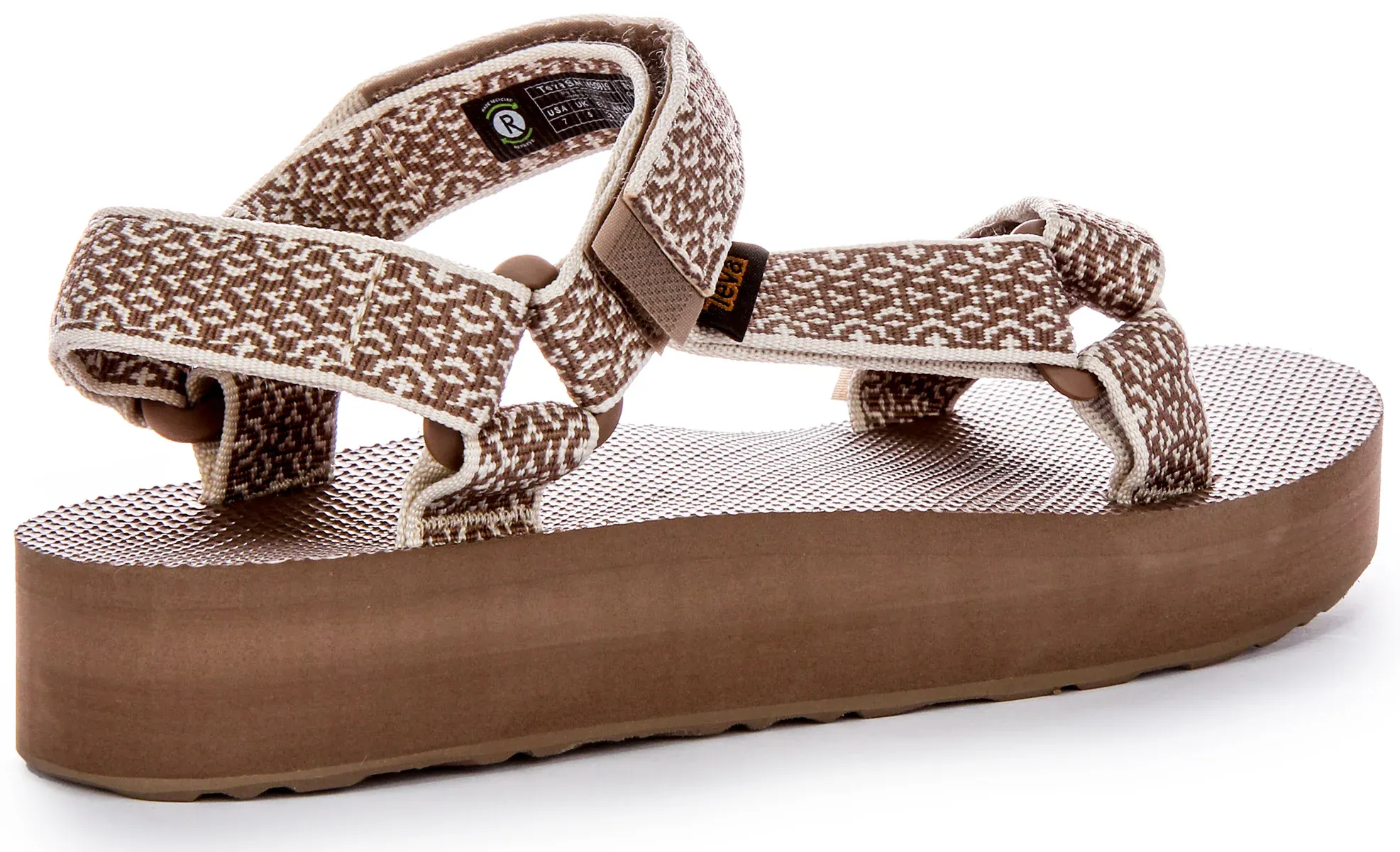 Crafted from vegan friendly materials, these sandals feature an open toe design with a chic beige and brown colorway that effortlessly complements any outfit. The adjustable maple strap ensures a secure and customizable fit, while the Midform platform adds a touch of elevation without sacrificing comfort.