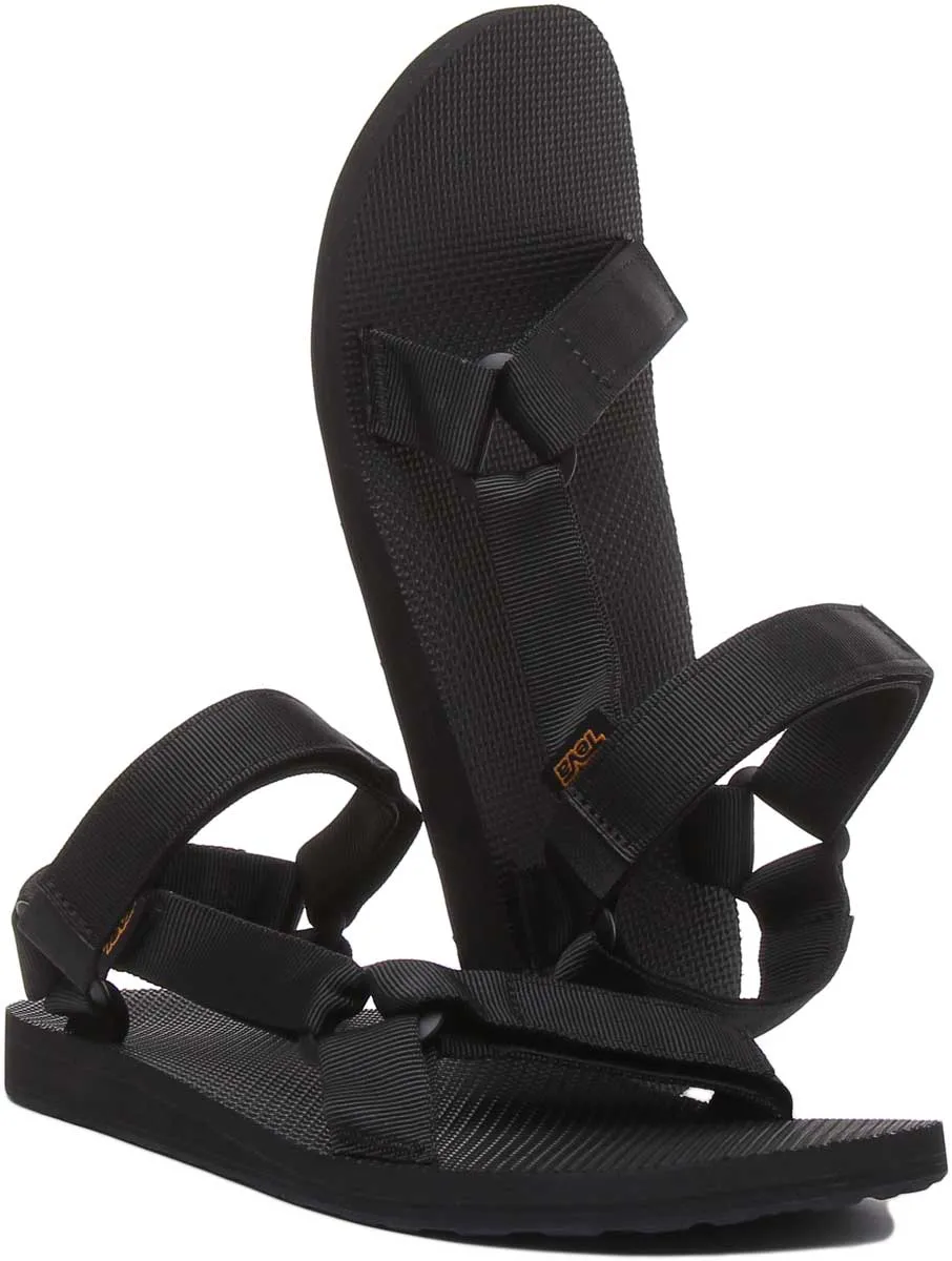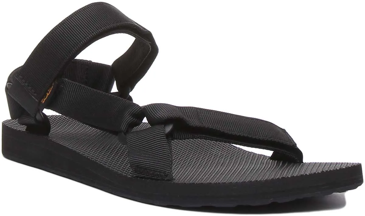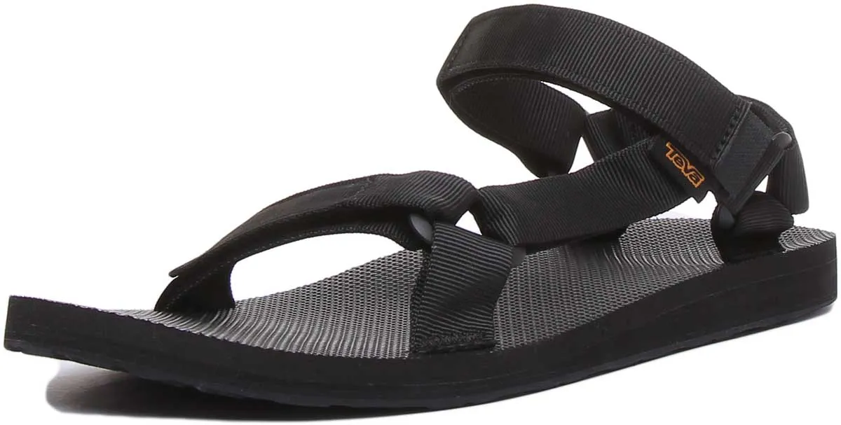 The quick drying Teva Original Universal sandals offer comfort and keep pace with your active lifestyle. It is a vegan footwear created using synthetic and plant based materials. It features hook and loop closure for easy on/off, molded EVA midsole for added support and rubber outsole for durability and traction. An added microban treatment keeps smell at bay. Perfect sandals for water activities or for all day wear.