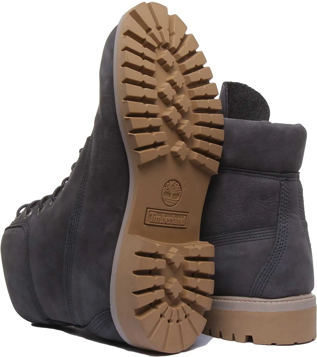 This classic Timberland 6-inch Boot features premium waterproof nubuck leather uppers. Direct attach, seam-sealed waterproof construction keeps feet dry in any weather and padded collar ensures comfortable fit around the ankle. It features exclusive anti-fatigue footbed that provides all day comfort. This lace up boot have rustproof hardware for long lasting wear and lug outsole for traction and durability.