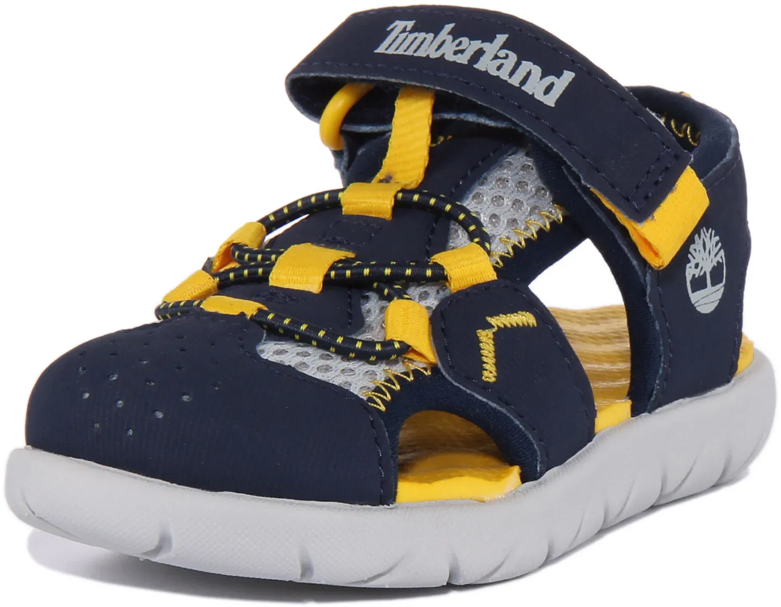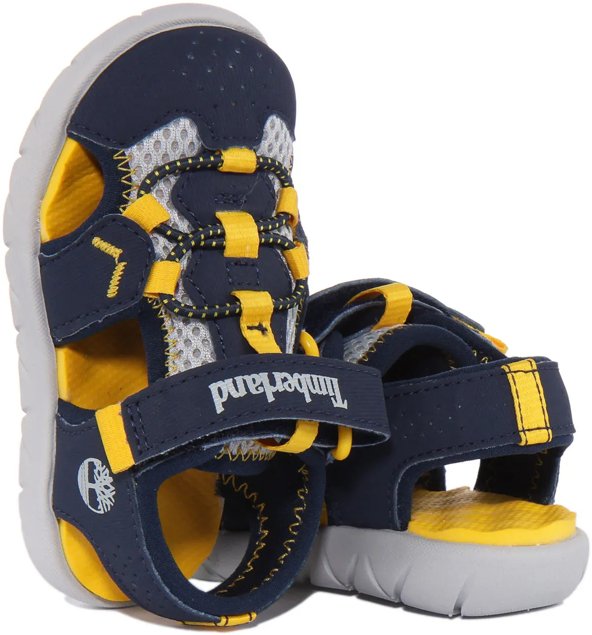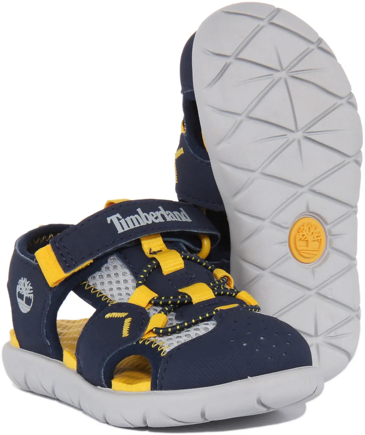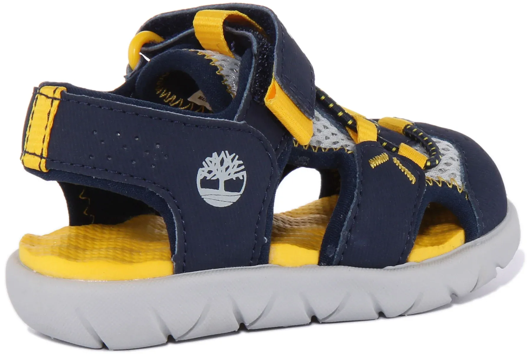 These kids’ Perkins Row Fisherman sandals from Timberland are made from synthetic leather and ReBOTL recycled fabric for less impact on the environment. It features hook and loop closure for adjustable and secure fit. Tiny feet stay supported and cushioned by the EVA footbed and outsole. Perfect sandals for kids for a day out.