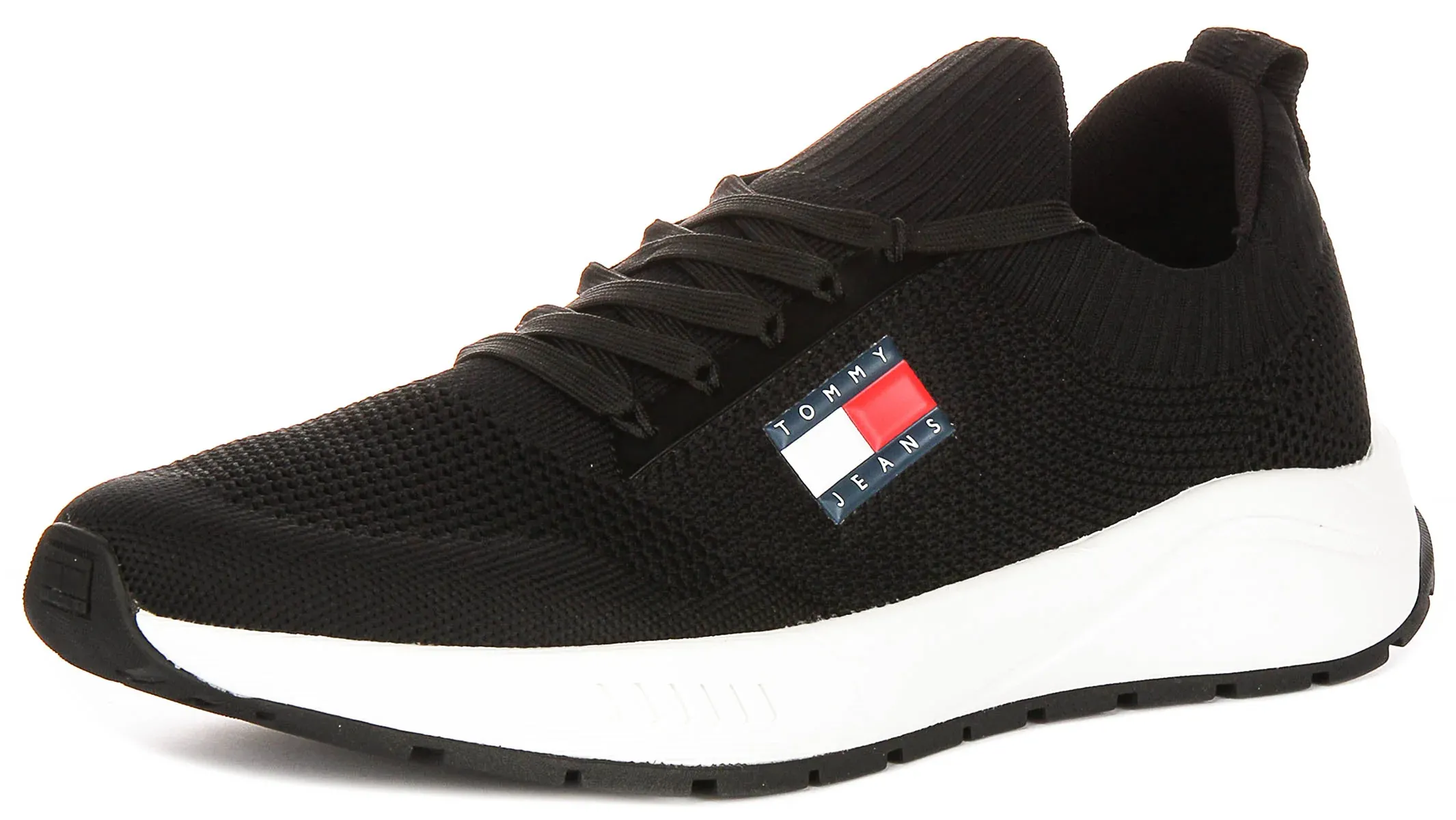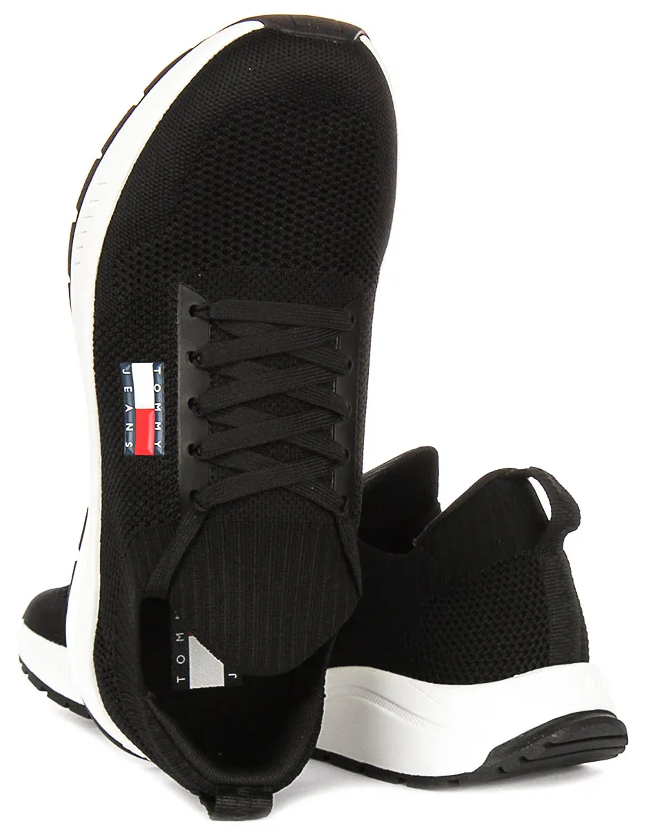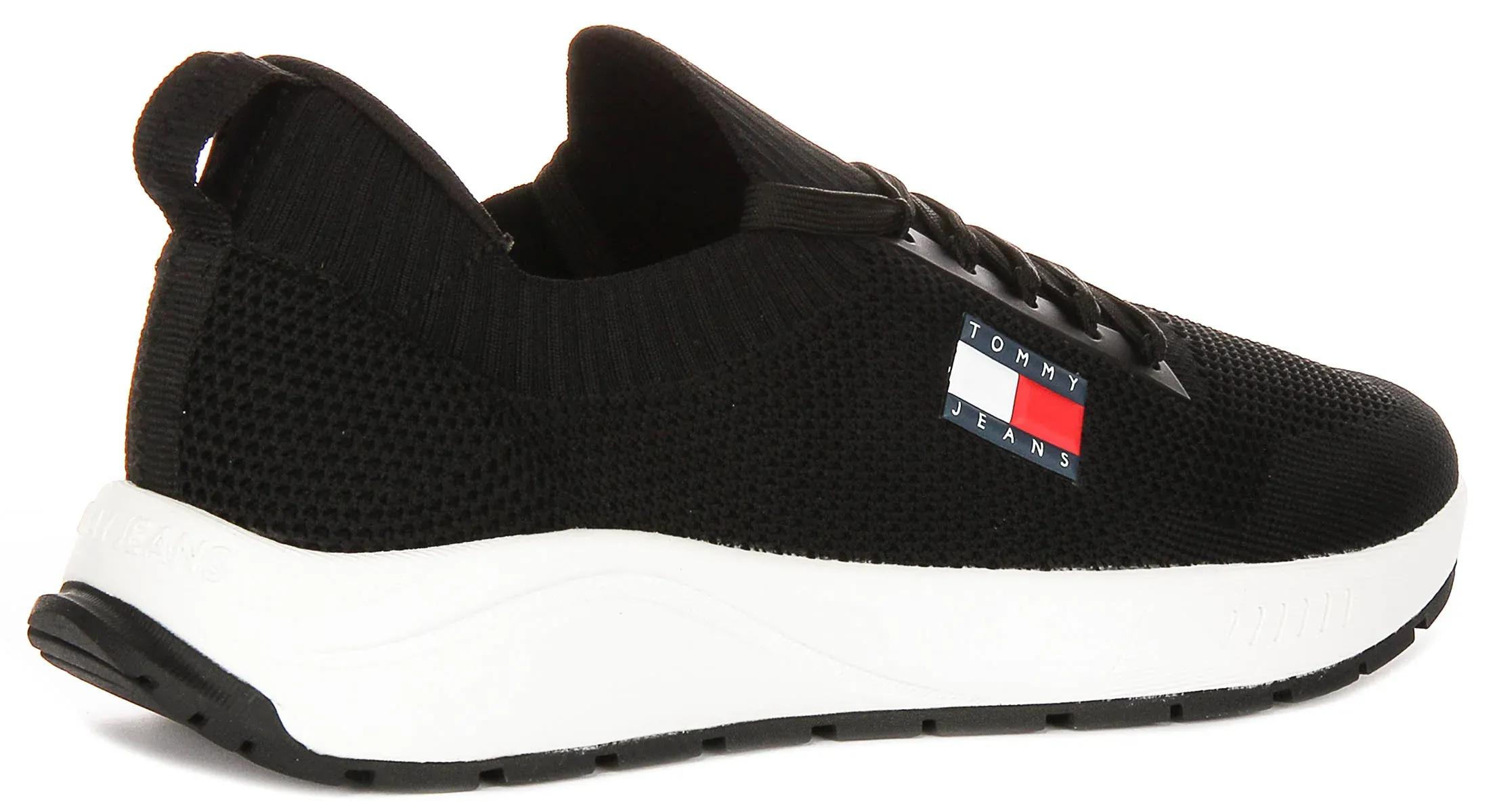 Tommy Jeans Tjm Runner Knt In Black White For Men Logo Emboosed Knit Trainers