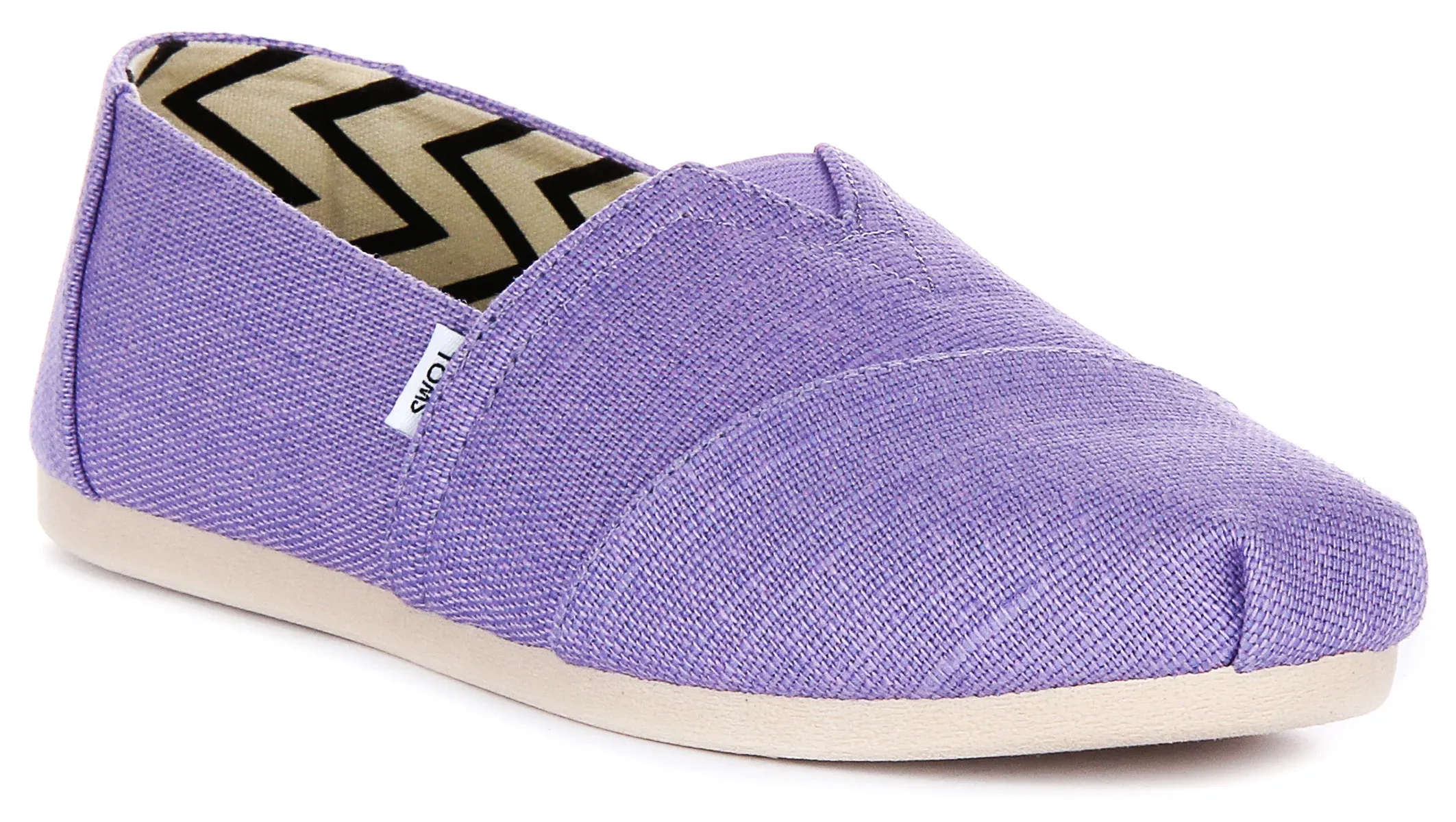 The Toms Women’s Canvas Espadrilles, known as the Alpargata Hrtg, blend comfort, simplicity, and style effortlessly. Designed specifically for women, these espadrilles are crafted with a durable and lightweight canvas upper that ensures everyday wearability. This particular pair boasts a charming lilac hue, adding a subtle pop of colour to any casual outfit. The brand’s signature tag is stitched discreetly on the side for added authenticity.