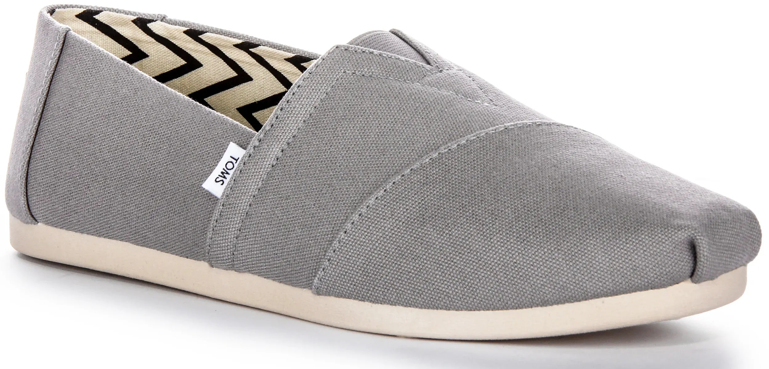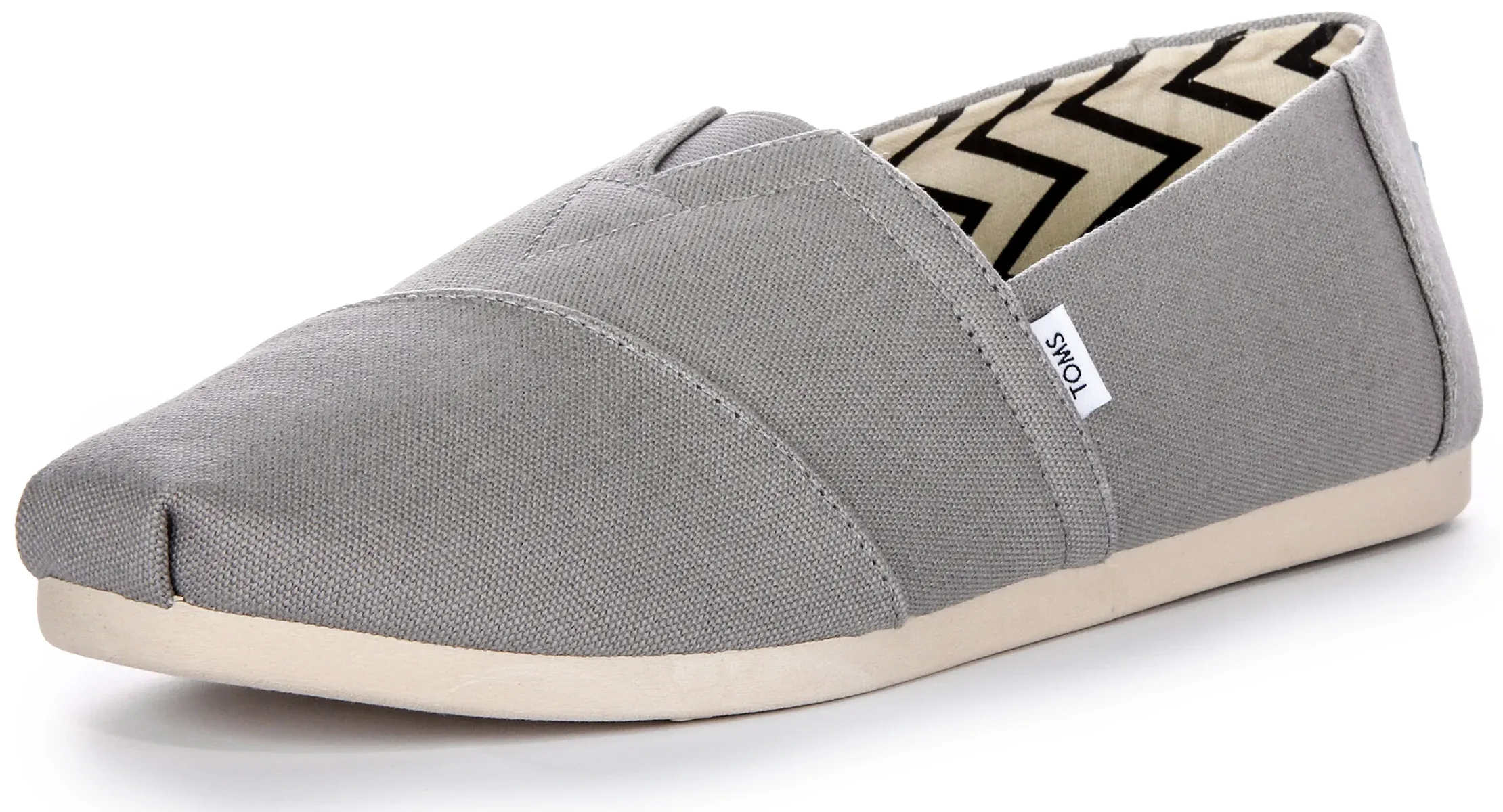 These lightweight espadrilles feature a slip on design crafted from recycled cotton canvas, making them a sustainable choice for casual wear. The grey color adds versatility to your wardrobe, while the classic espadrille detailing and Toms branding provide a laid back yet refined aesthetic. The comfortable insole and flexible outsole make these shoes ideal.