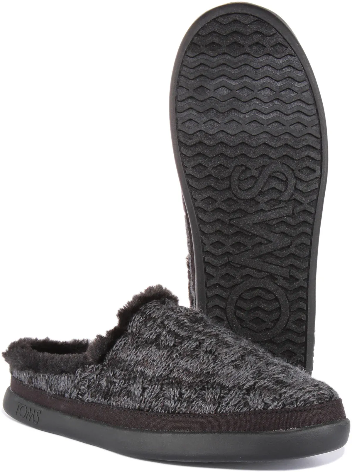Toms Sage are faux fur lined mule slippers made from sweater knit textile upper for warmth and comfort. It features rubber outsole with custom TOMS tread for stability and traction. Finished with Toms branding, these sandals are perfect for cozy winter days.