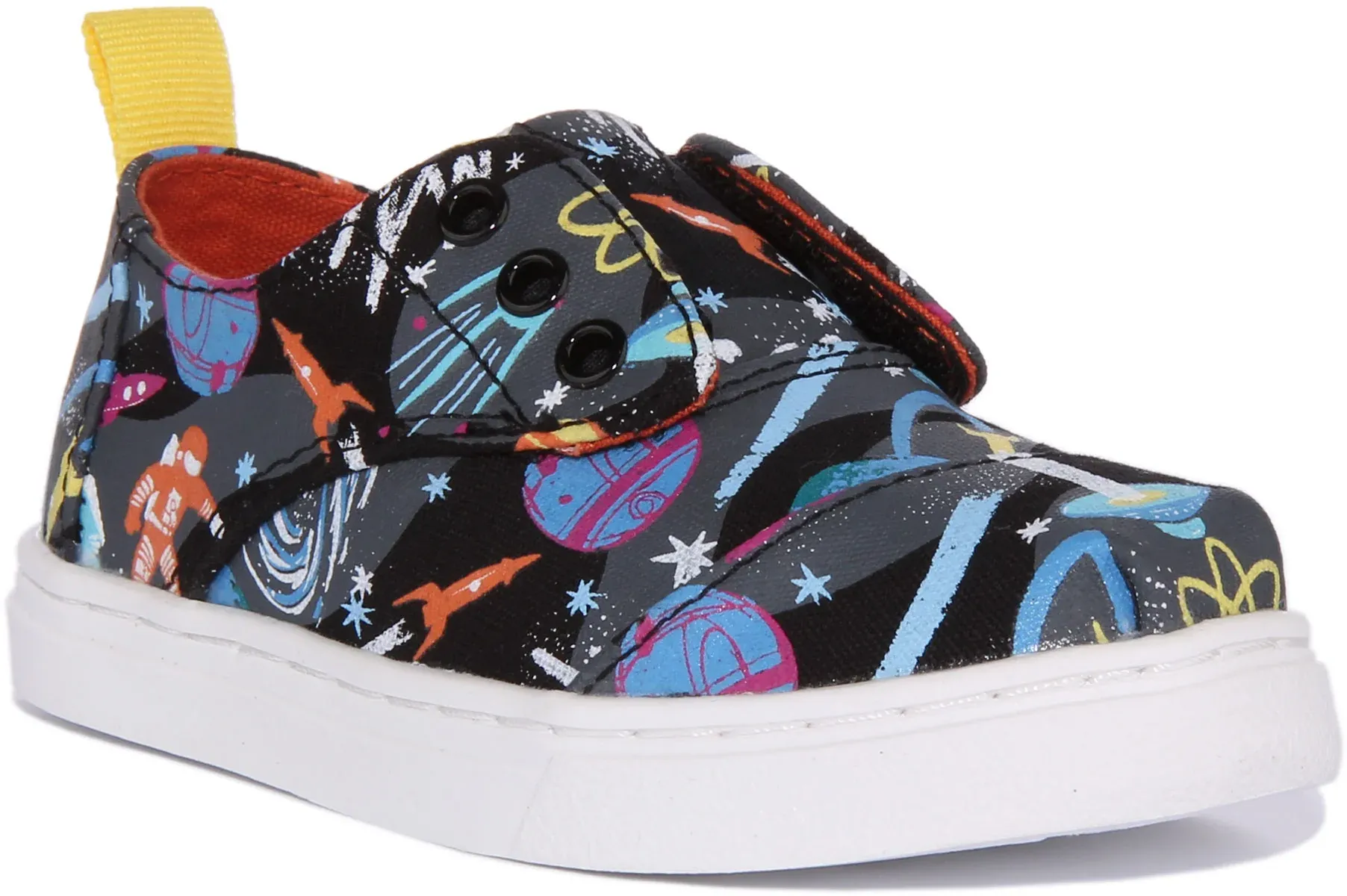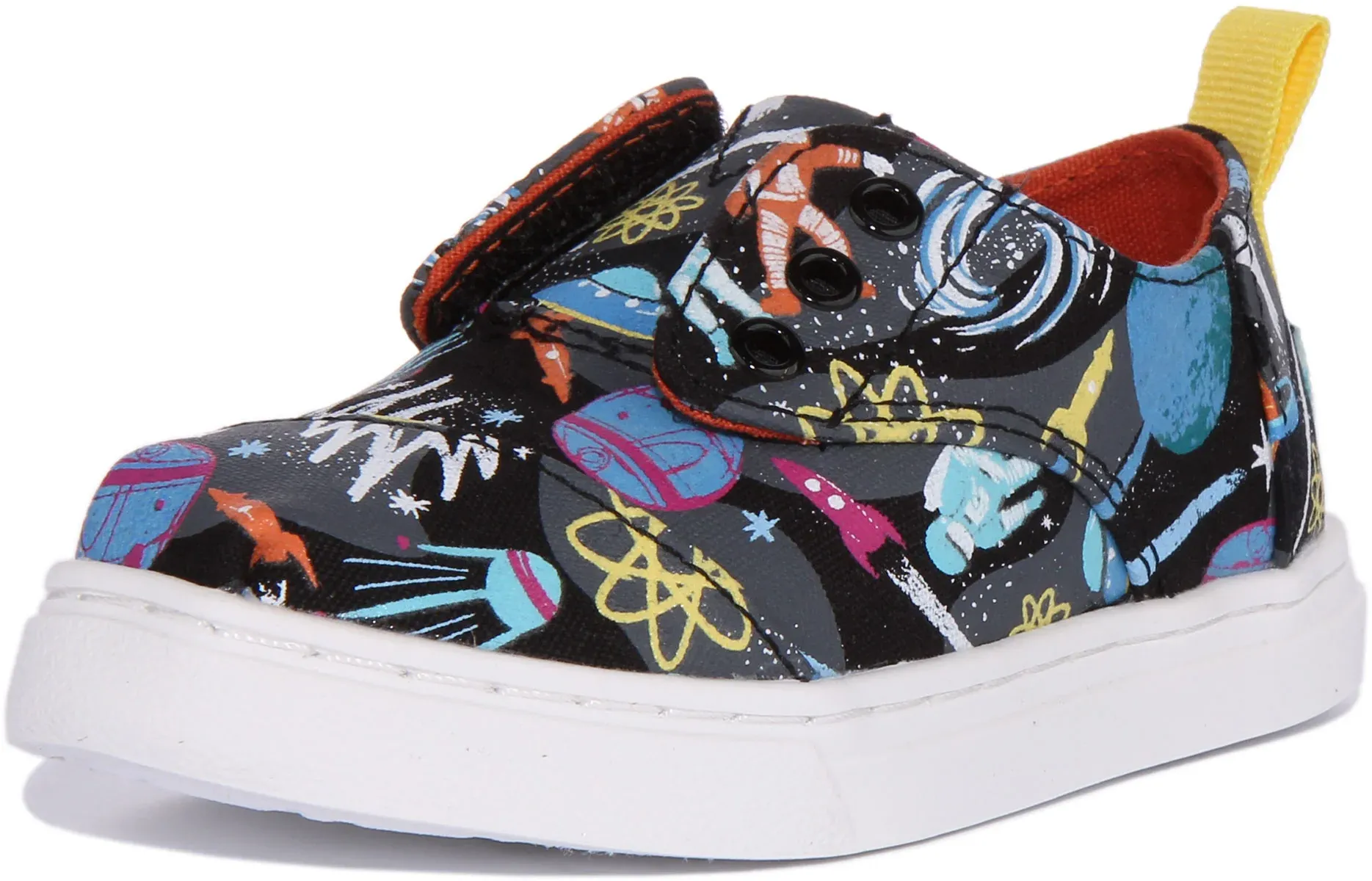 Made from Galaxy print textile upper, these classic kid’s cordones cupsole trainers from Toms feature canvas footbed with built-in cushioned insole for ultimate comfort in every step. It has reinforced v-stitch with hook and loop strap for easy on and off. Perfect slip-on trainers for all day, everyday wear.