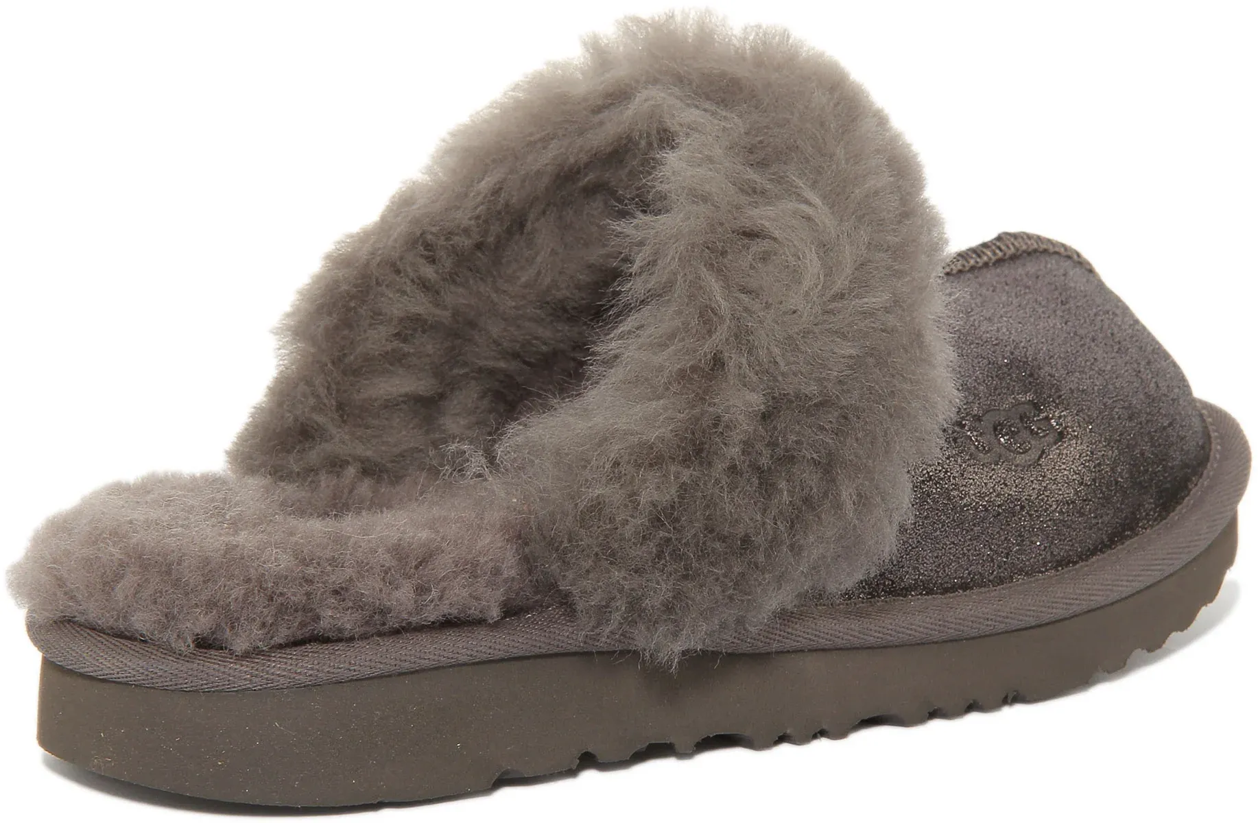 One of your favorite slippers, the Cozy II is lined with fluffy, soft wool and is super easy to slip on and off. It features metallic suede uppers with ultra light sole that is suitable for both indoors and out, so that your little one can wear it around the house, out to lunch or around town on errands.
