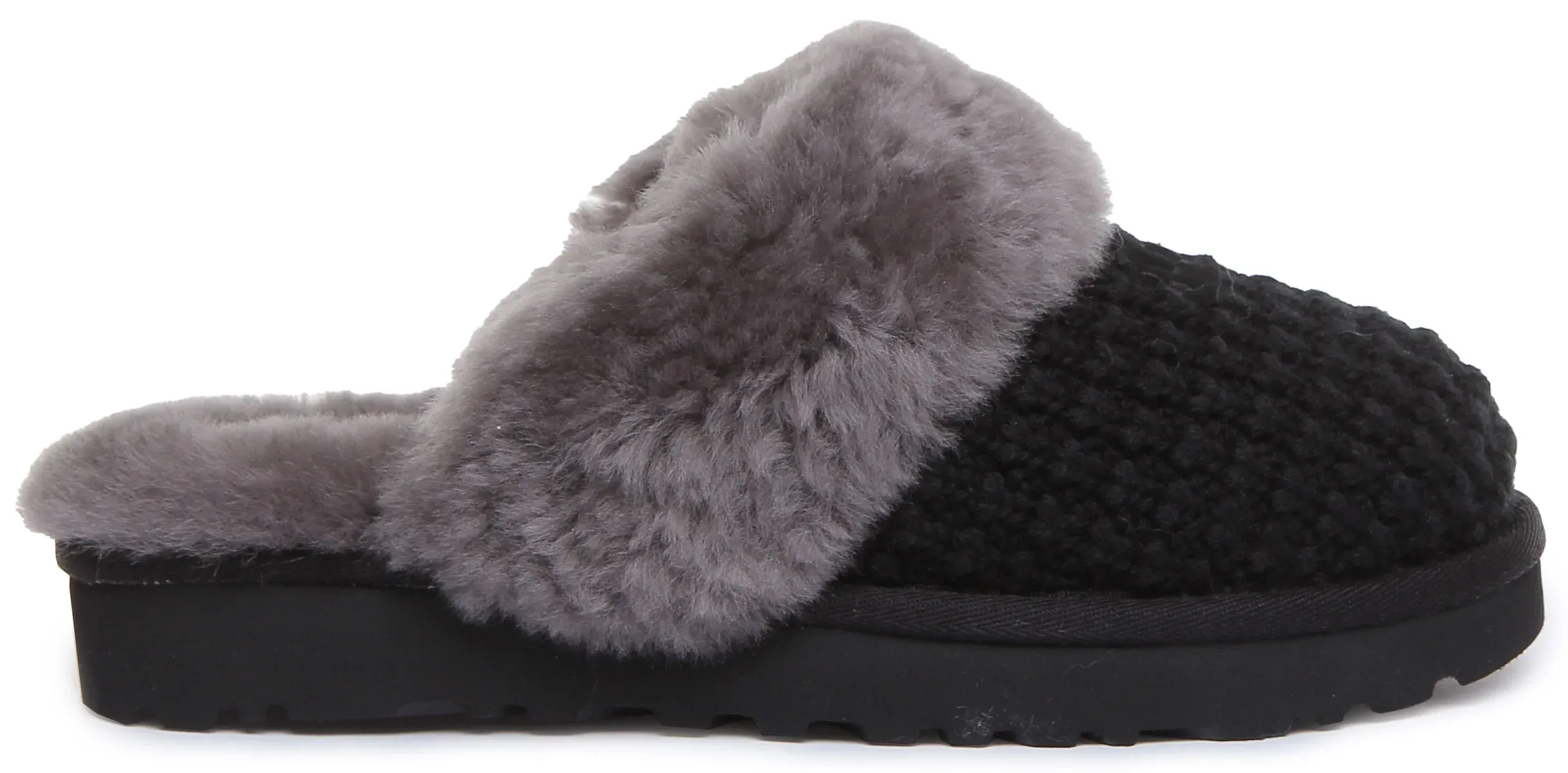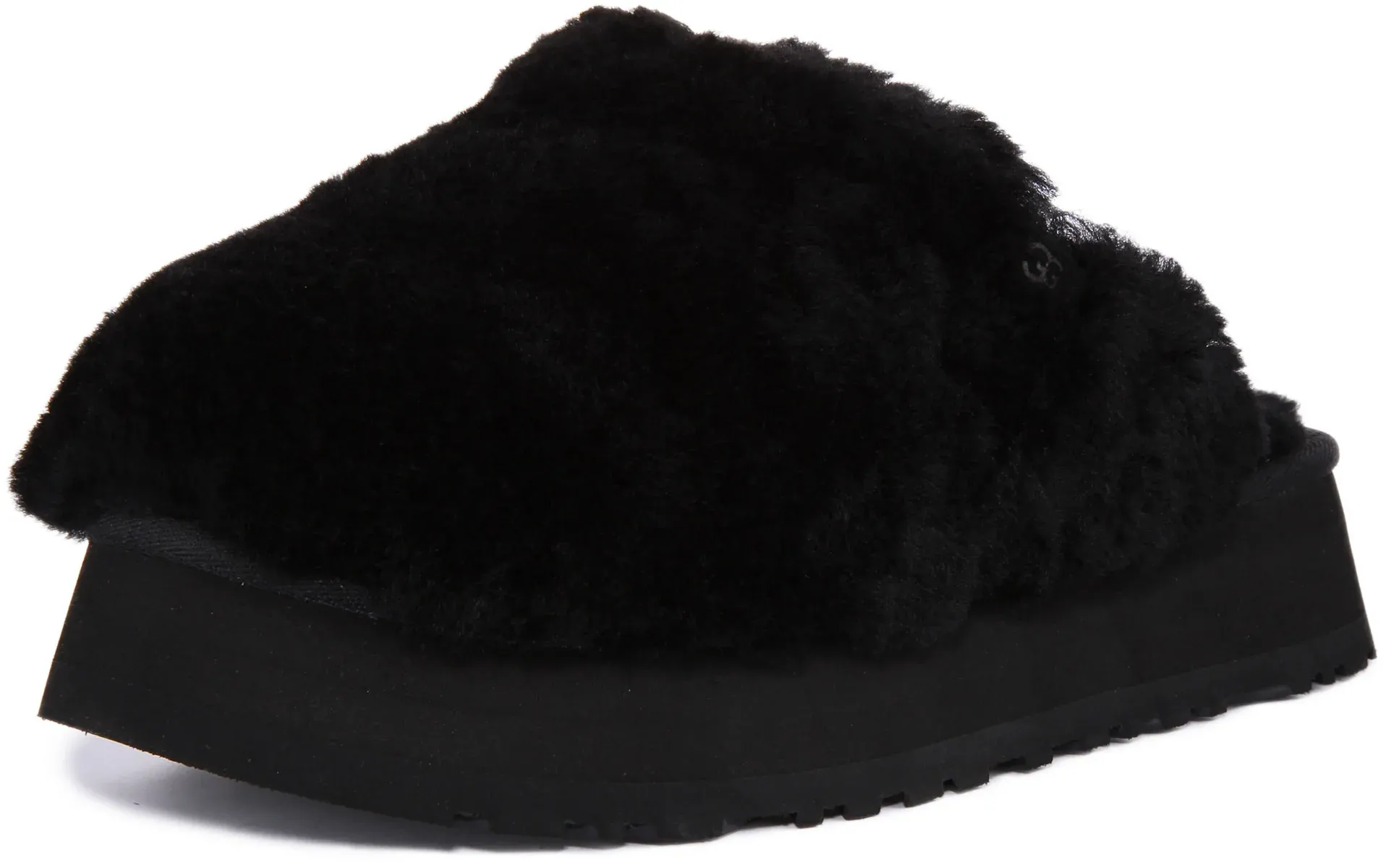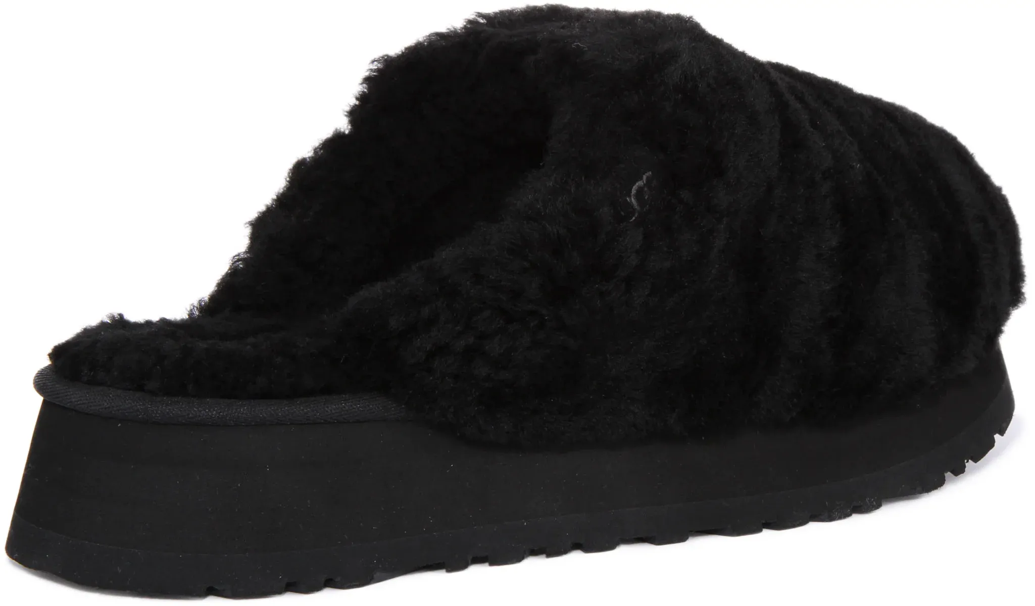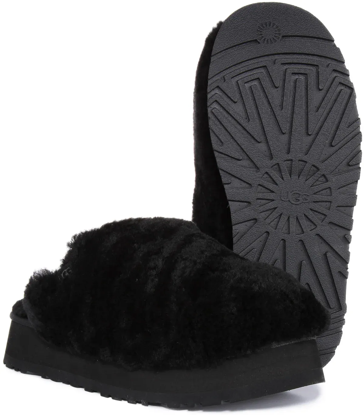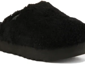 Made from a curly sheepskin upper for durability and warmth, these platform slippers from Ugg feature closed toe design. It has Ugg’s signature UGGplush wool blend lining and sheepskin insole for added comfort, while the EVA outsole ensures stability and durability. Finished with an embossed UGG logo, these slippers are a perfect combination of style and comfort.