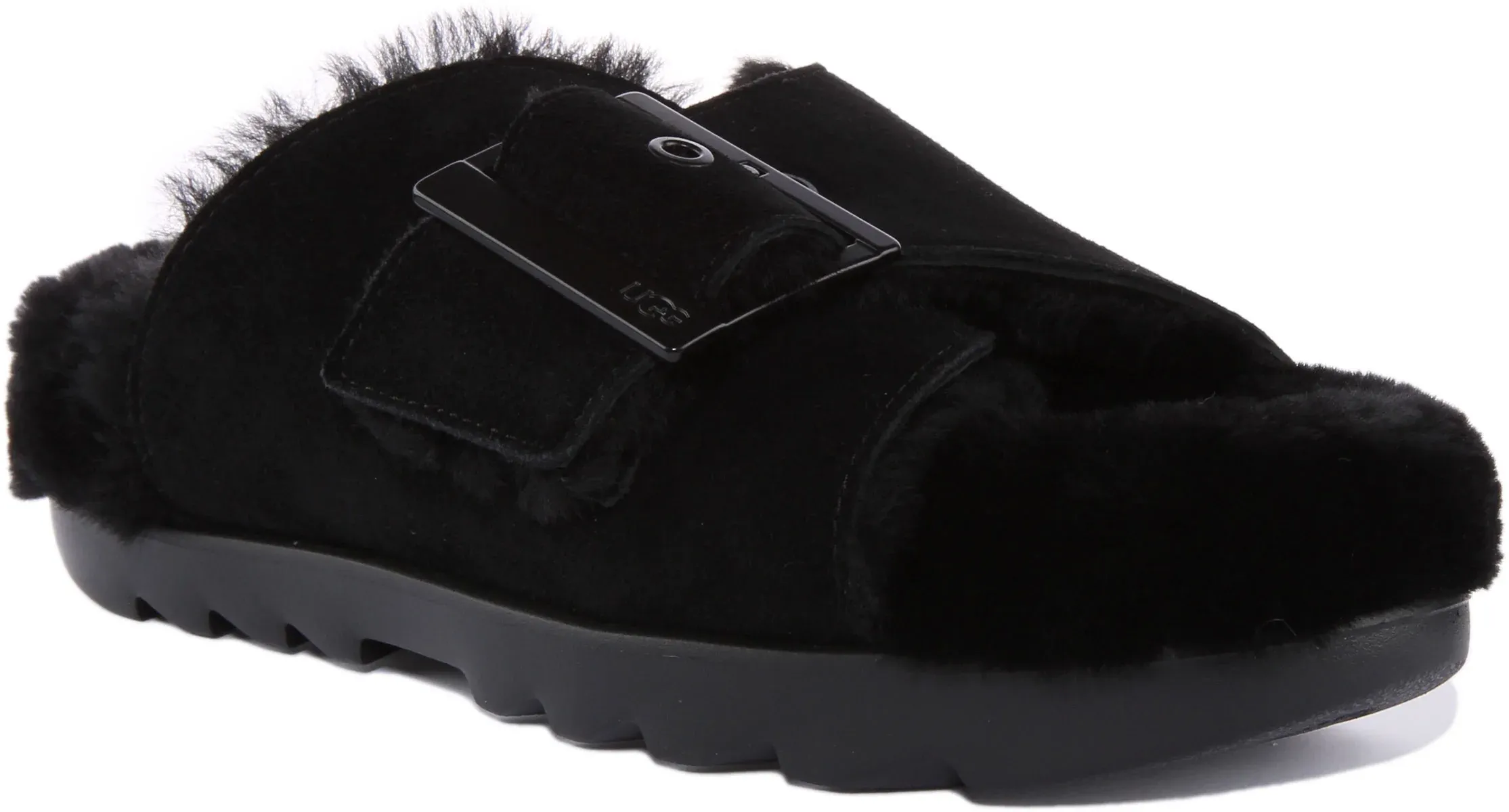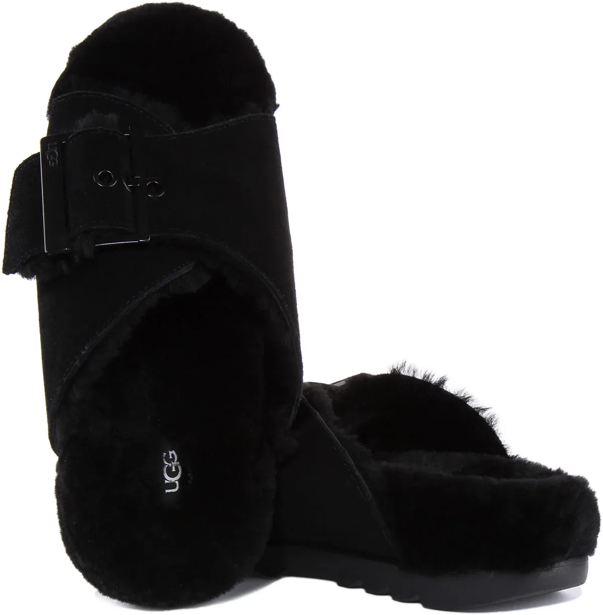 Suitable for both indoors and outdoors, the Ugg Outslide features an open toe design with premium suede upper and Ugg’s signature sheepskin lining. It has contoured EVA footbed, dual density EVA midsole and EVA outsole. Finished with an adjustable metal buckle and platform sole, these sandals are perfect for home or on the go.