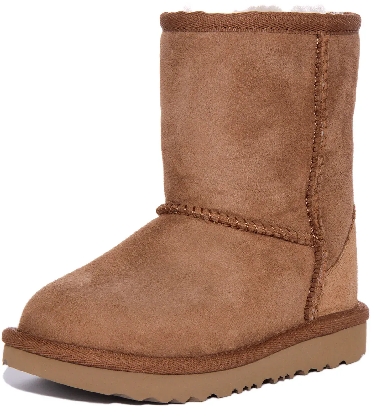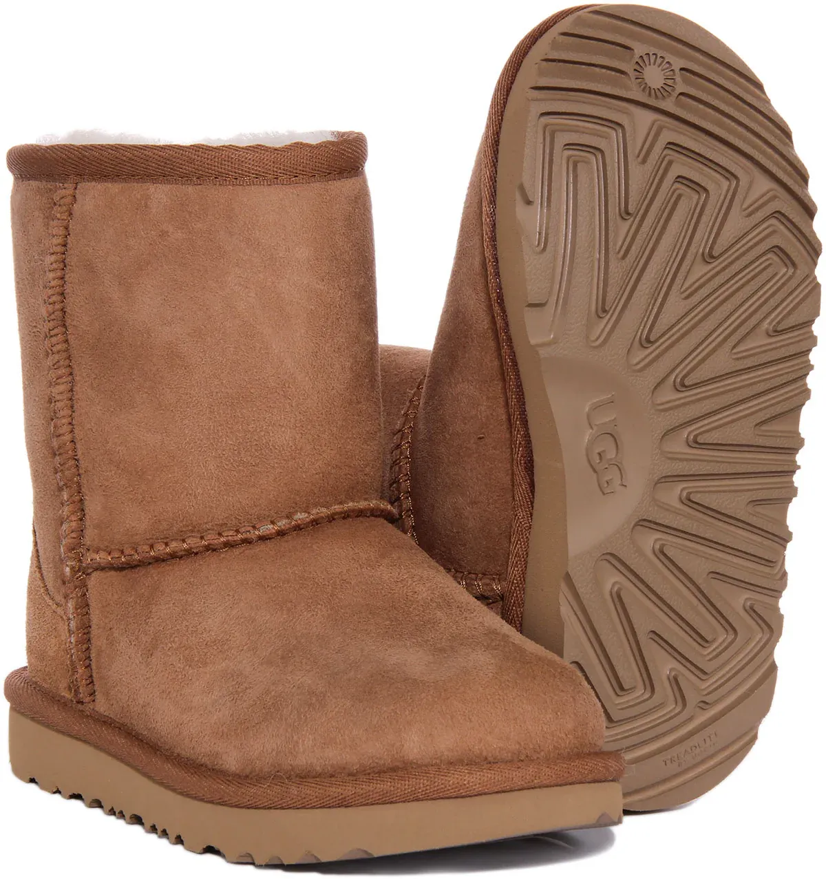 Iconic for its soft sheepskin and enduring design, Ugg Classic Short II Boot has been updated with stain and water resistance and a lightweight sole to increase cushioning and traction. It features twinface sheepskin upper, nylon binding and treadlite by UGG outsole for added support. Finished with whipstitch detailing, this boot is built to move the way kids do, running, jumping and whatever else they get into.