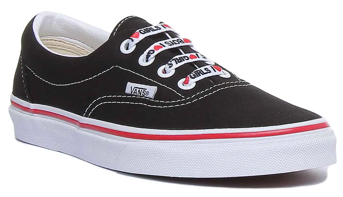 The I Heart Era combines the Vans classic low top skate shoe with sturdy canvas uppers, metal eyelets, and padded collars for support and flexibility. It also includes a heel logo, and signature rubber waffle outsoles. These are lightweight and comfortable shoes suitable for everyday use. You can pair them with your best jeans or a casual dress, these sneakers will only add extra style to your desired look.