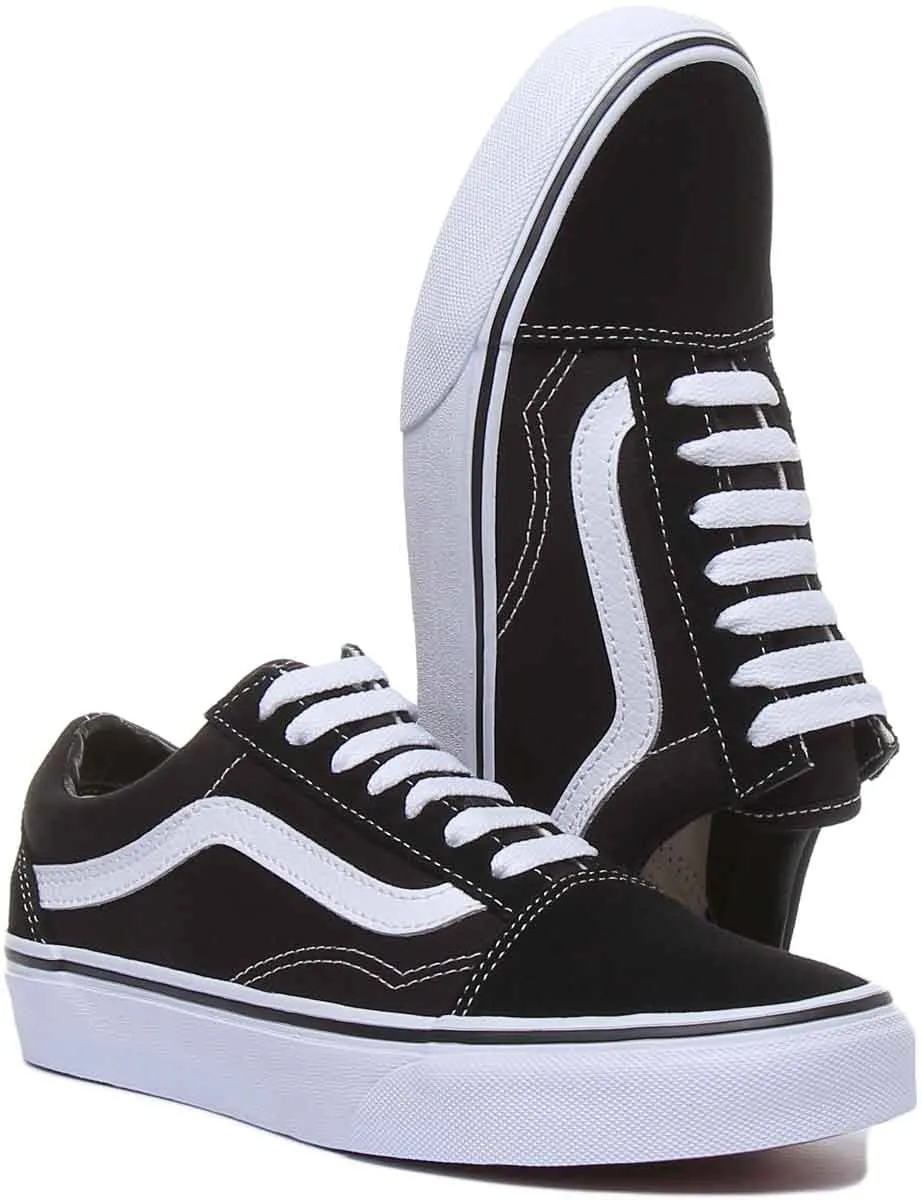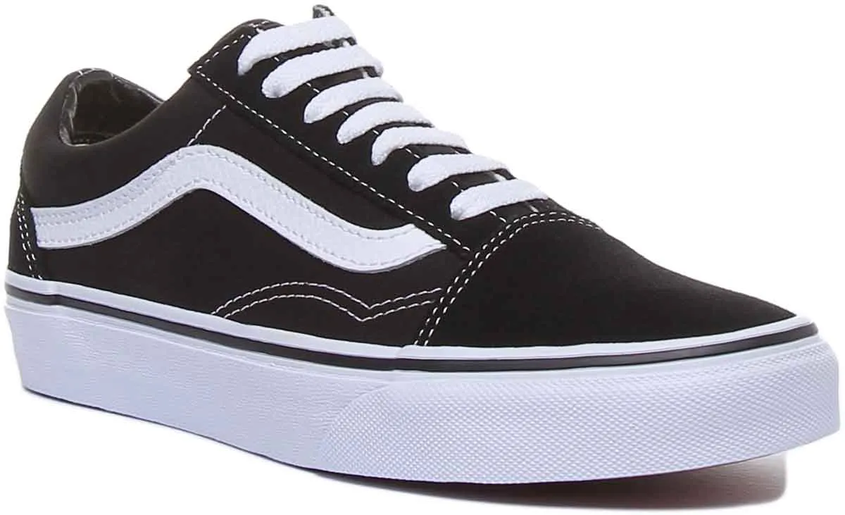 The Old Skool, Vans classic skate shoe and first to bare the iconic side stripe, is a low top lace-up featuring sturdy canvas and suede uppers, re-enforced toecaps to withstand repeated wear, padded collars for support and flexibility, and signature rubber waffle outsoles for excellent grip and traction. EVA insole and cotton lining provides extra comfort. Perfect classic trainers for any casual occasion.