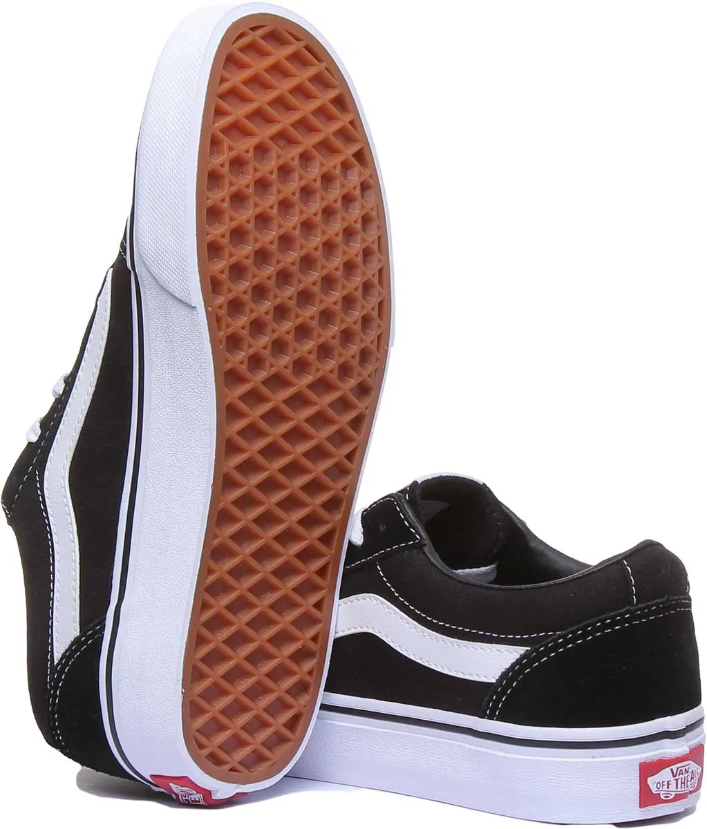 The Vans Ward Old Skool is a classic low top sneaker featuring sturdy canvas and suede upper that offers luxurious and comfortable feel. It features re-enforced toecaps to withstand repeated wear, padded collars, cushioned midsole for comfort and signature rubber waffle outsoles. The Old Skool by Vans ticks all the boxes; indulging in grunge vibes and retro inspired design to make it a street must have.