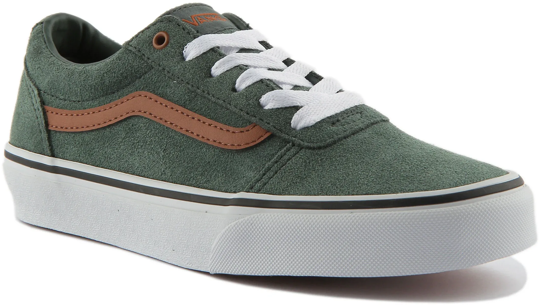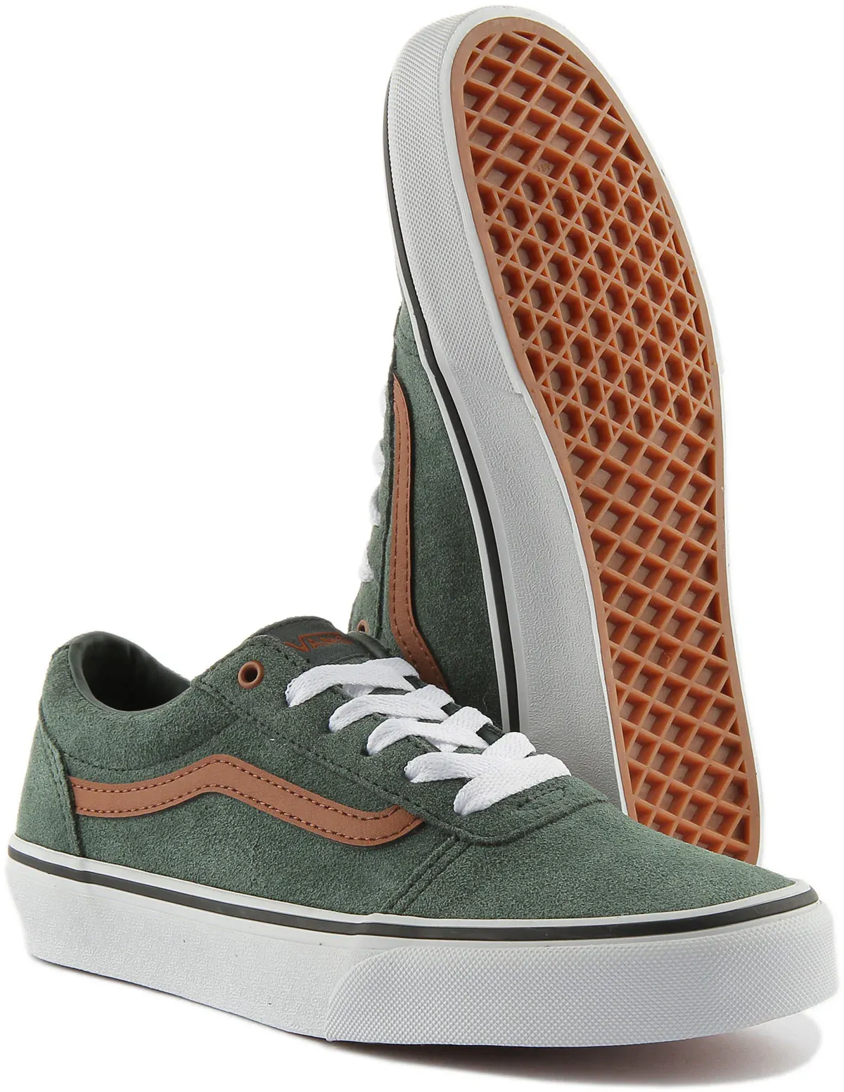 Dress up in a cool skate park style in these Vans Ward sneakers with signature Vans side stripes in contrast color. This classic shoe features a durable suede upper for a comfortable feel. Its padded collar along with its signature Waffle outsole, give this comfortable style sneakers maximum durability. A perfect compliment to any casual outfit.