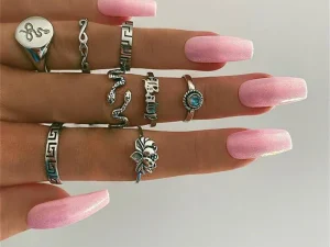 Vintage Popular Lotus Snake-Shaped Ring 8-Piece Diamond Set Ring Jewelry
